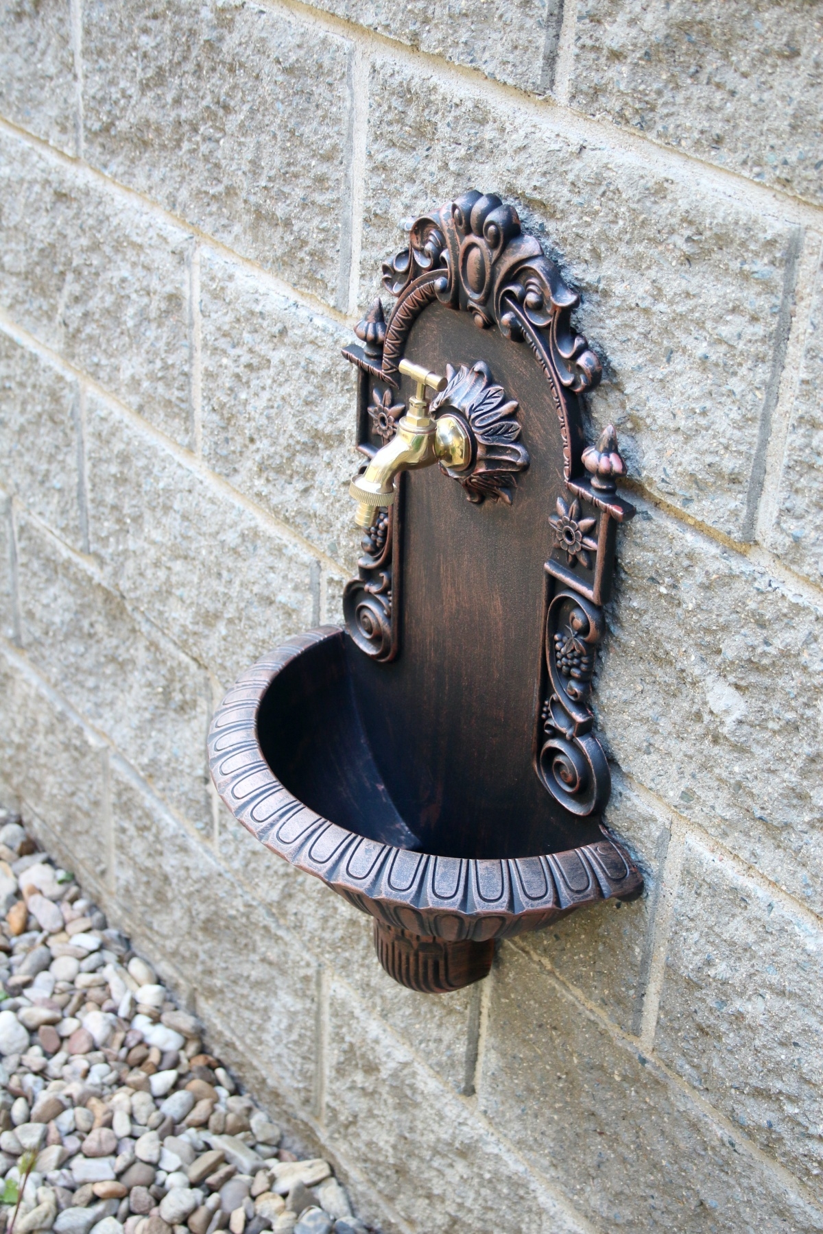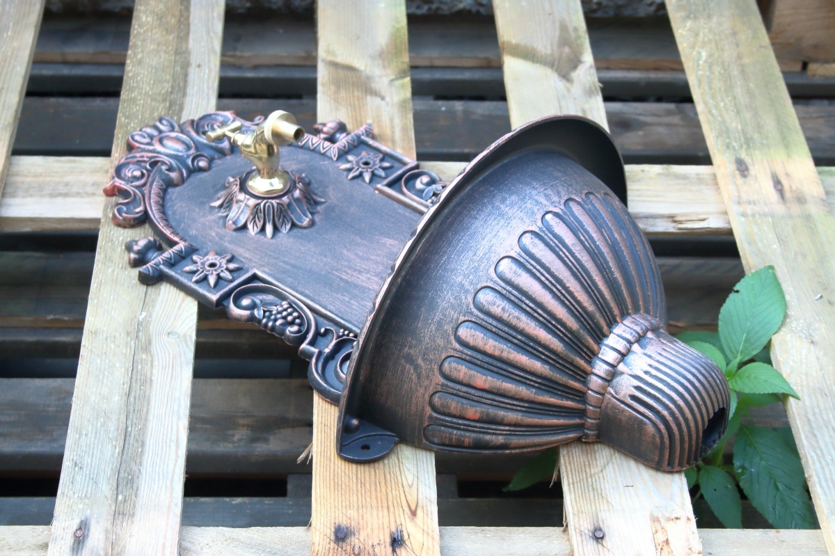 Nástěnné retro umyvadlo vyrobené ze slitiny hliníku lze použít na i na povrch zateplené fasády.