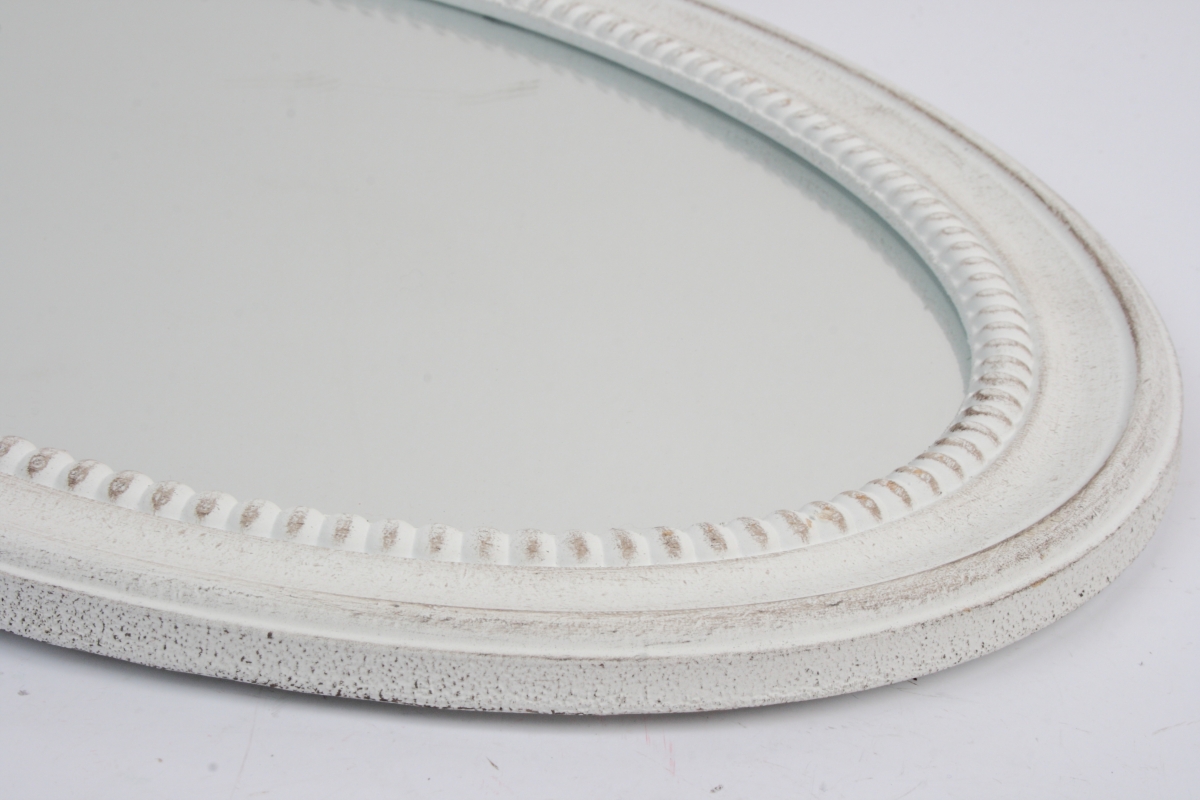 Bílé oválné zrcadlo s patinou a oprýskaným vzhledem přináší do prostoru špetku atmosféry starých časů. Pokud milujete dekorace v duchu venkovského stylu, jistě pro toto krásné zrcadlo nějaké místo najdete.