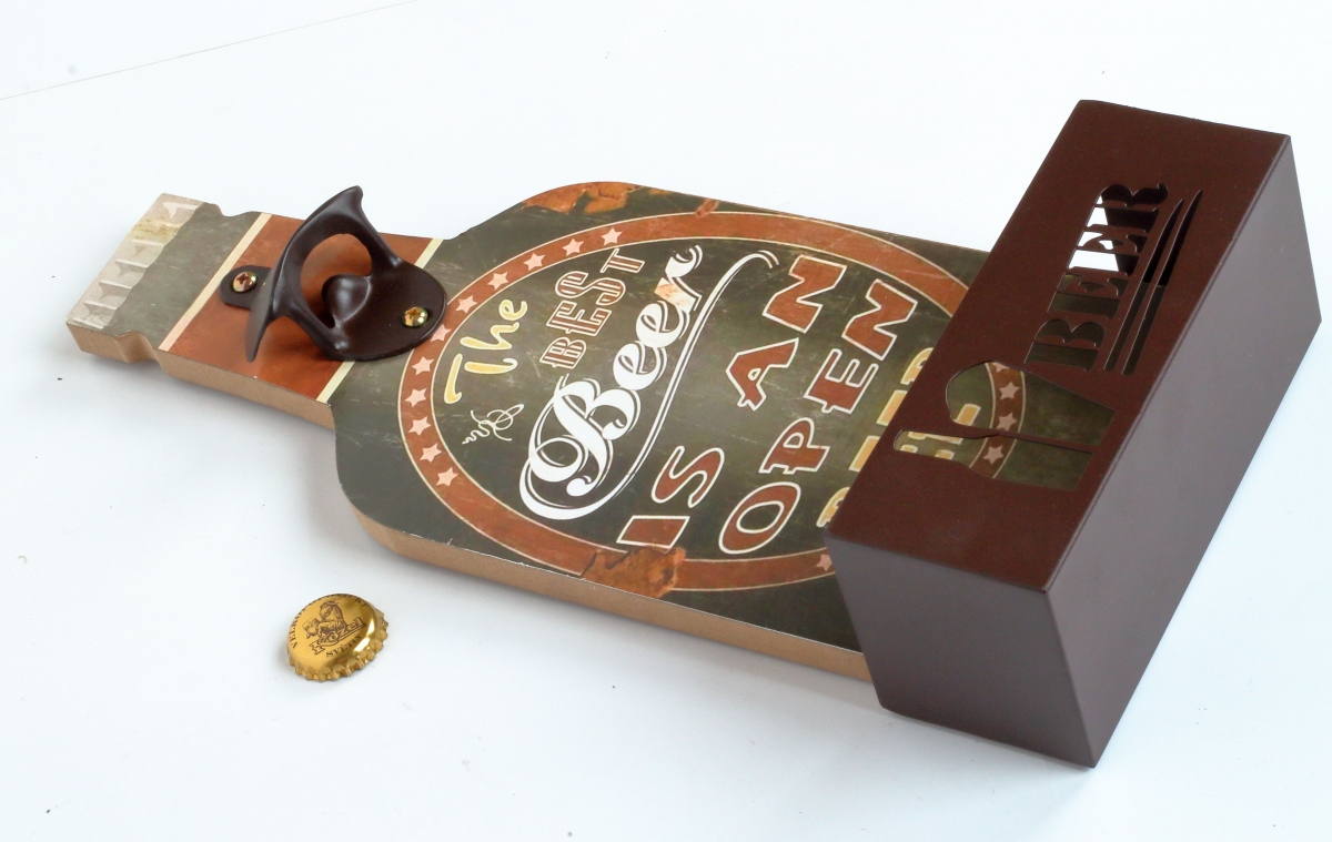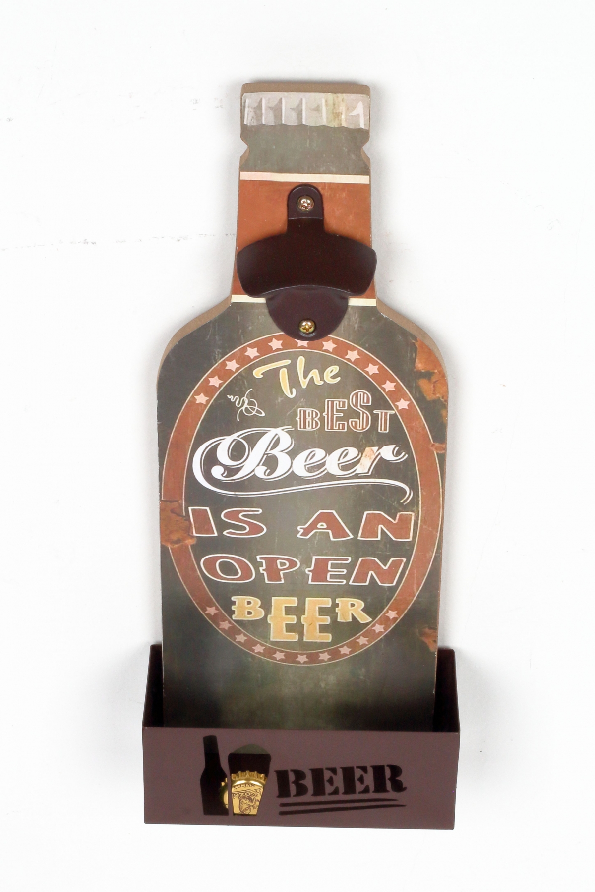 Nástěnný otvírák na lahve THE BEST BEER 14x37cm s šikovnou přihrádkou na odkládání víček. Zapomeňte na nepořádek a mějte vždy otvírák pěkně po ruce!