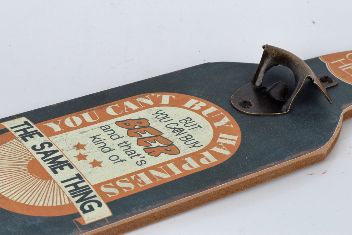 Nástěnný otvírák na pivo 36cm jako originální doplněk venkovního posezení nebo ryze pánských pokojů či pracoven. Chuť na pivo si totiž svůj čas a místo nevybírá, znáte to?