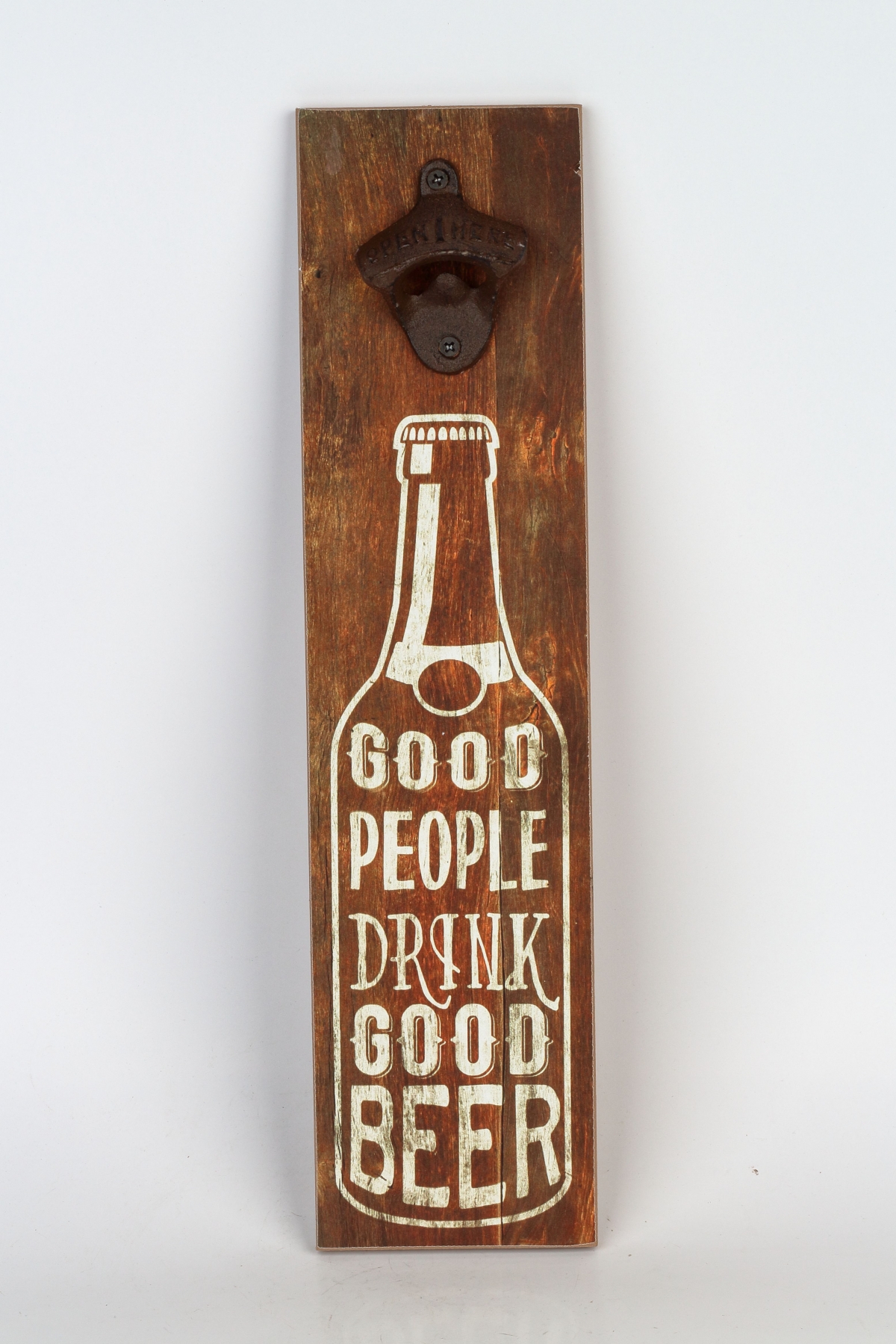 Nástěnný otvírák na pivo GOOD PEOPLE DRINK GOOD BEER 40cm jako originální doplněk venkovního posezení nebo ryze pánských pokojů či pracoven. Chuť na pivo si totiž svůj čas a místo nevybírá, znáte to?