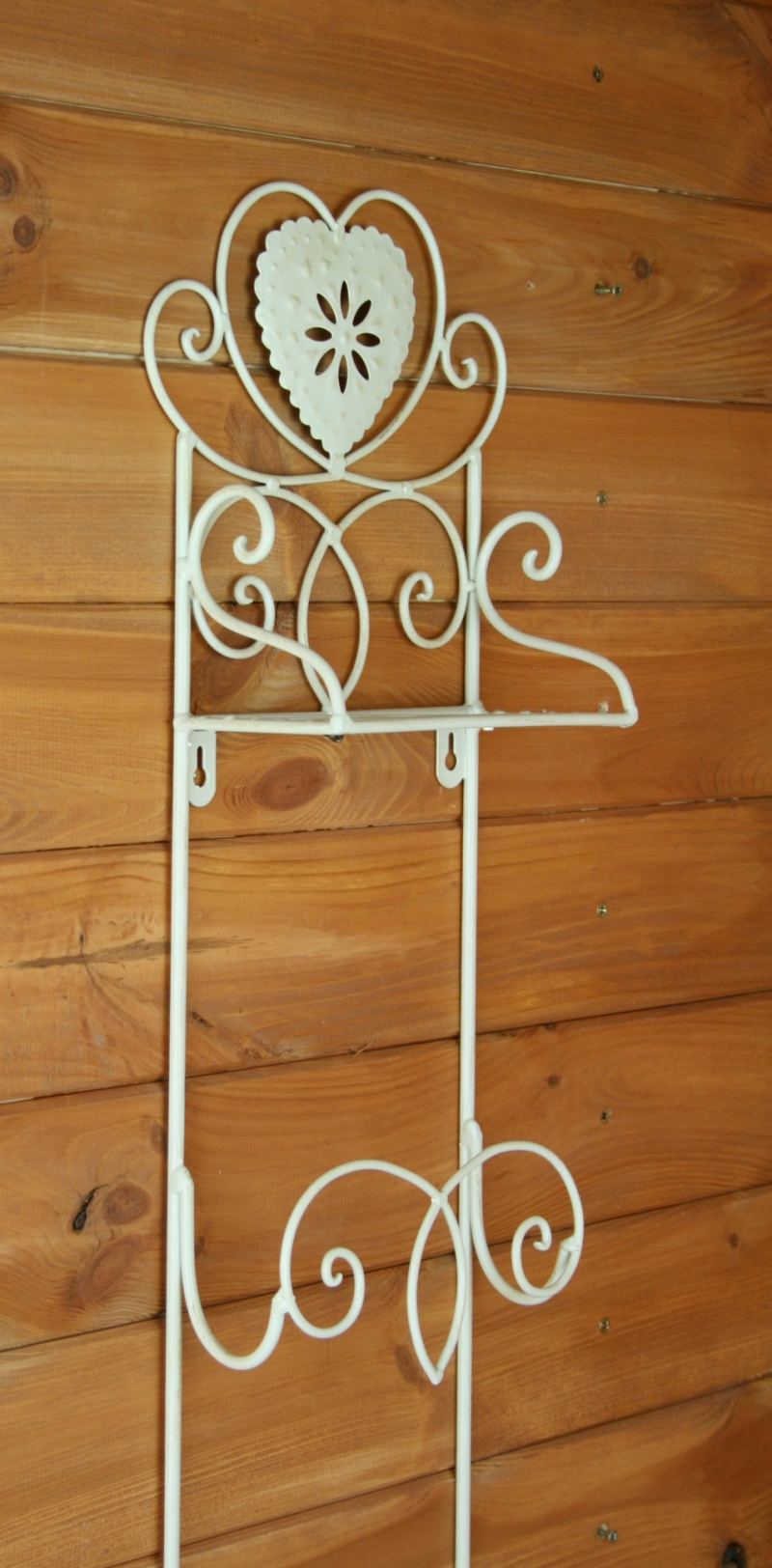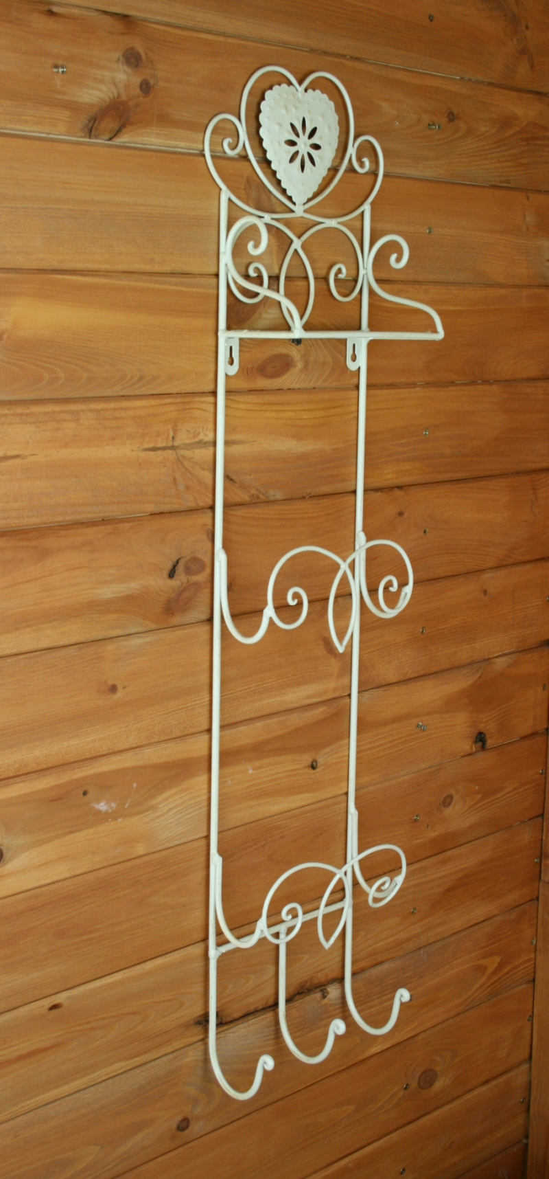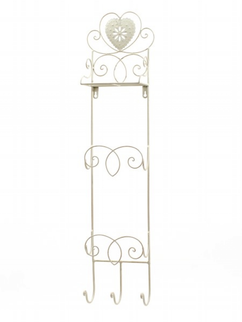 Nástěnný věšák z bílého kovu s motivem srdce patří do kolekce, která se skládá především z kuchyňských doplňků - stojánek na ubrousky, na kuchyňské utěrky nebo na kuchařku.