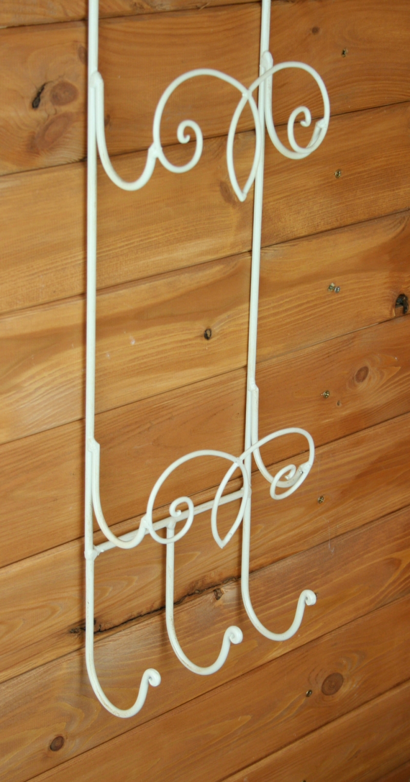 Tento věšák má dvě zarážky např. na smotané osušky, háčky na ručníky a odkládací poličku.