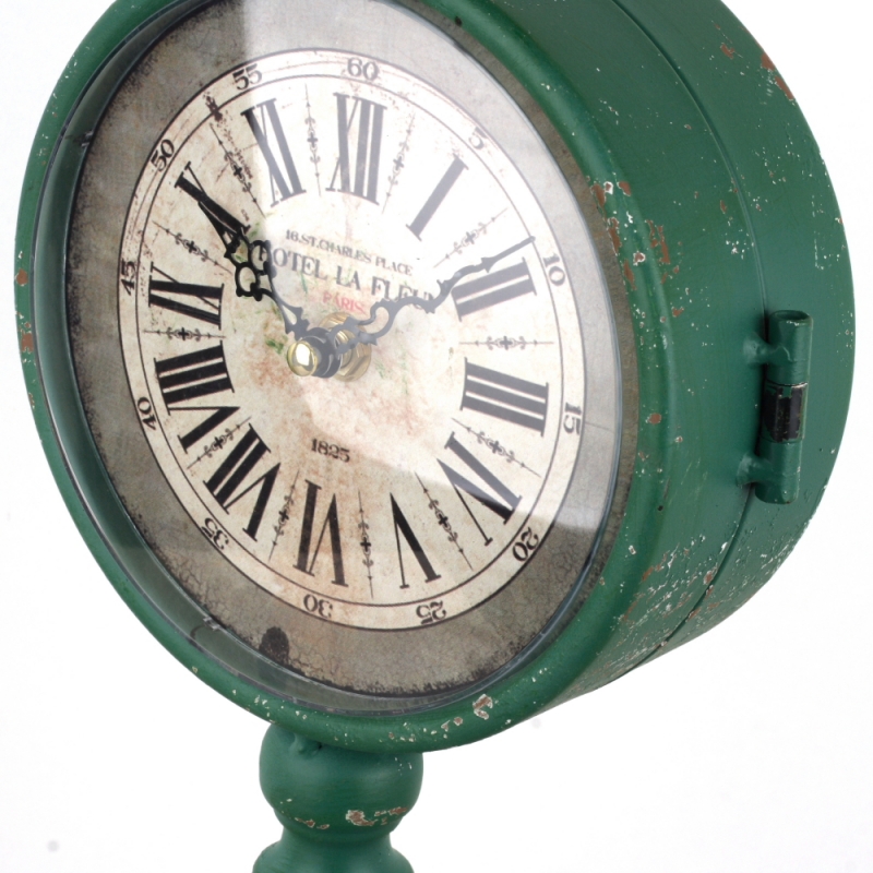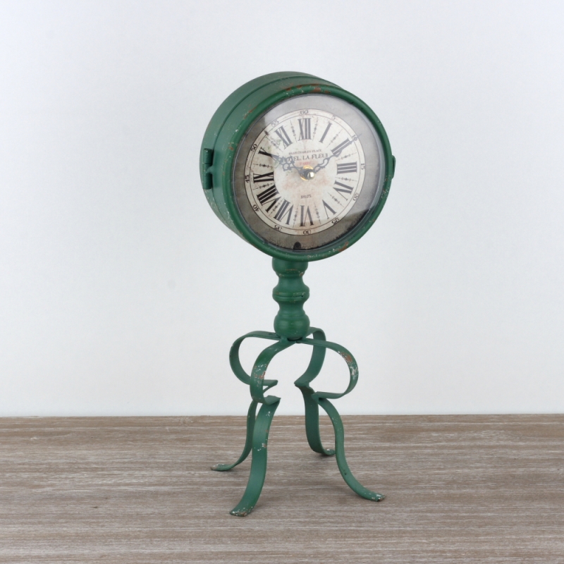 Zelené stolní hodiny s rozměry 40 x 18 x 14 cm. Styl Vintage kov , váha - 0.75g