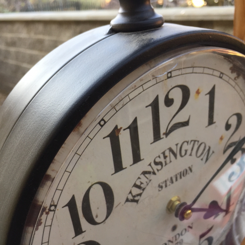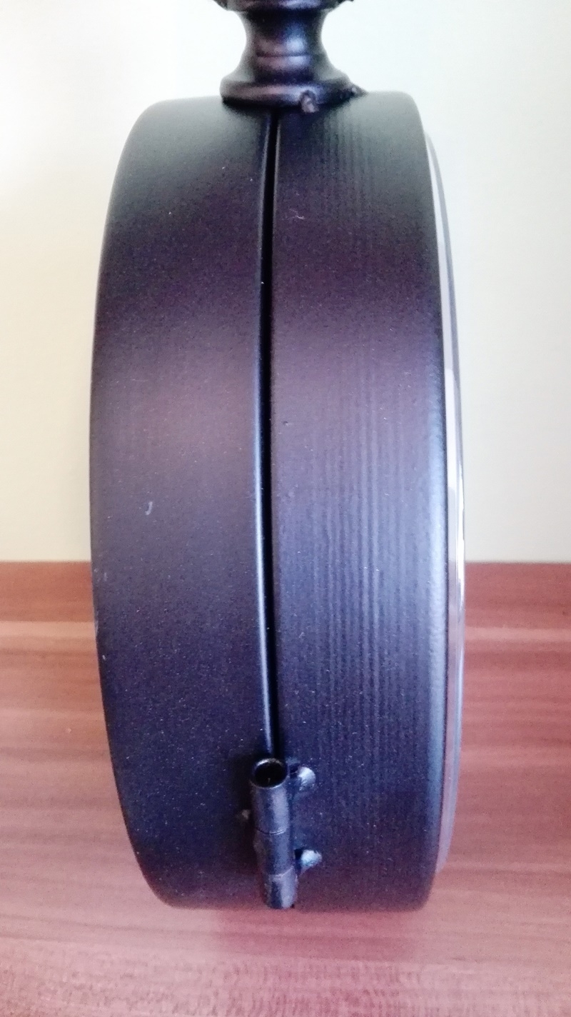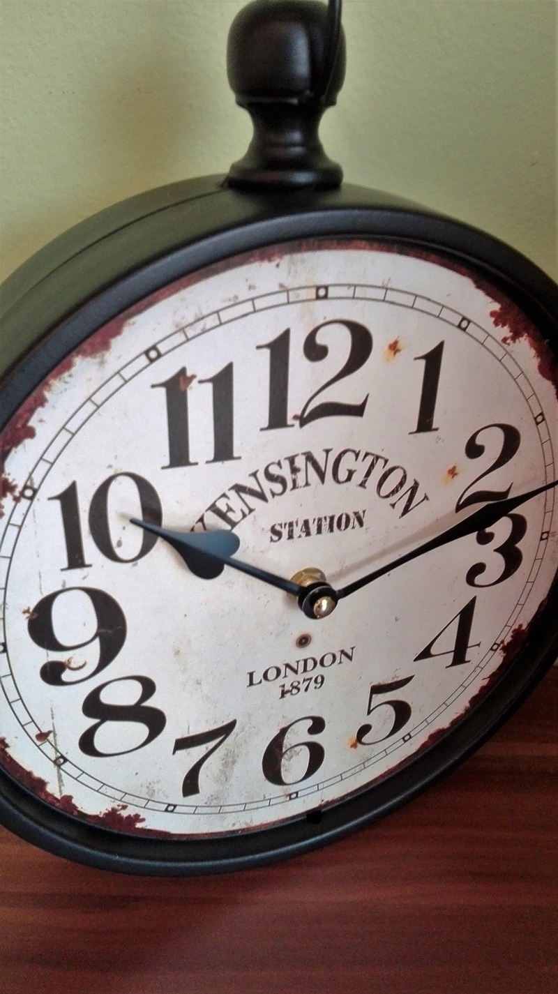 Oboustranné nádražní hodiny s velkými čísly 24cm jsou zavěšené na kovové ozdobné konzolce, která se velmi snadno za pomoci dvou šroubků připevní ke stěně. Oboustranné hodiny nejlépe vyniknou v úzké chodbě nebo na sloupu či trámu. Ciferník je otevírací, každá strana má vlastní hodinový strojek Quatz na tužkové baterie AA.