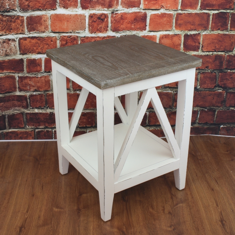 Odkládací konzolový stolek Cottage má desku přírodní barvě dřeva s patinou, zbytek je laděn do bílé barvy s výrazným oprýskaným vzhledem. Ten k venkovskému stylu neodmyslitelně patří! Na stolek můžete položit krásnou barevnou květinu, kterou rozzáříte celý interiér.