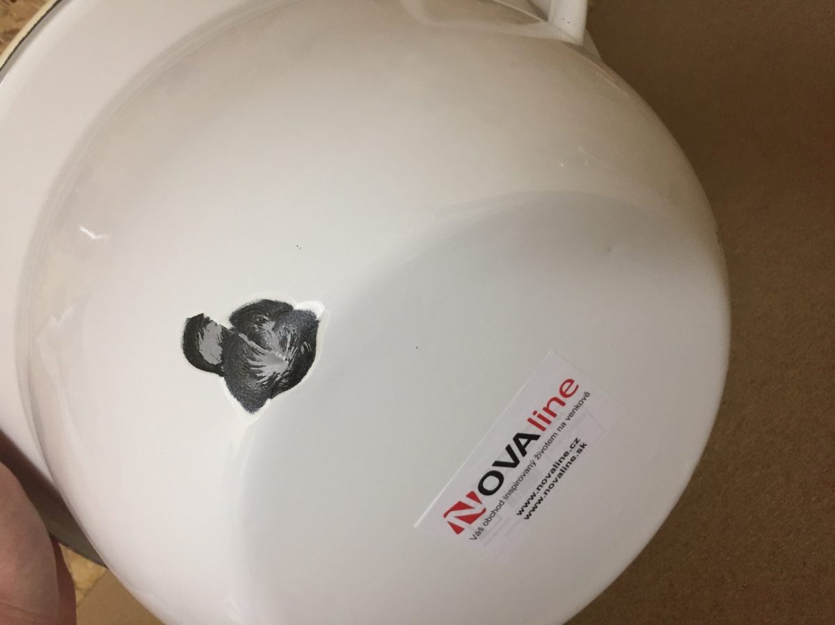 Retro vandlík utrpěl při přepravě poškození. Na 4 místech došlo k odprýsknutí smaltu.