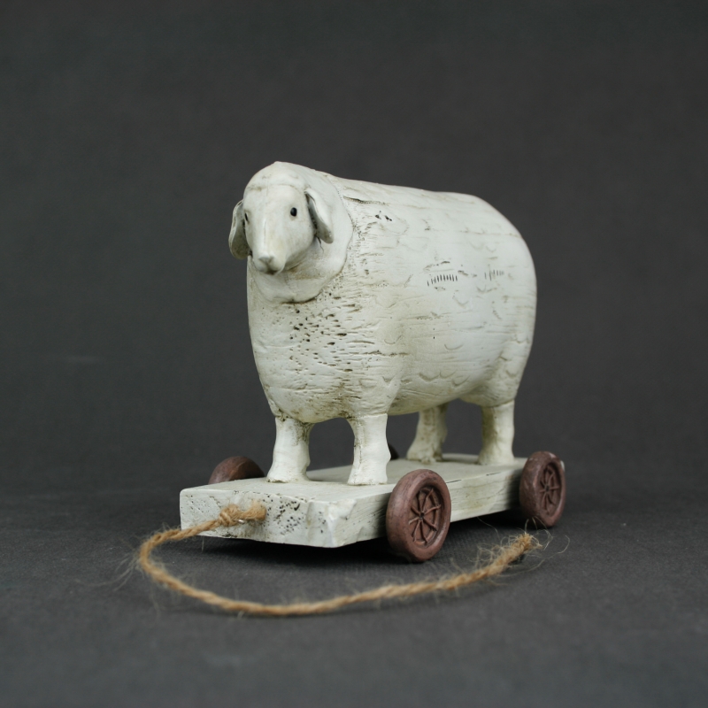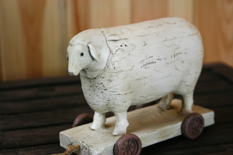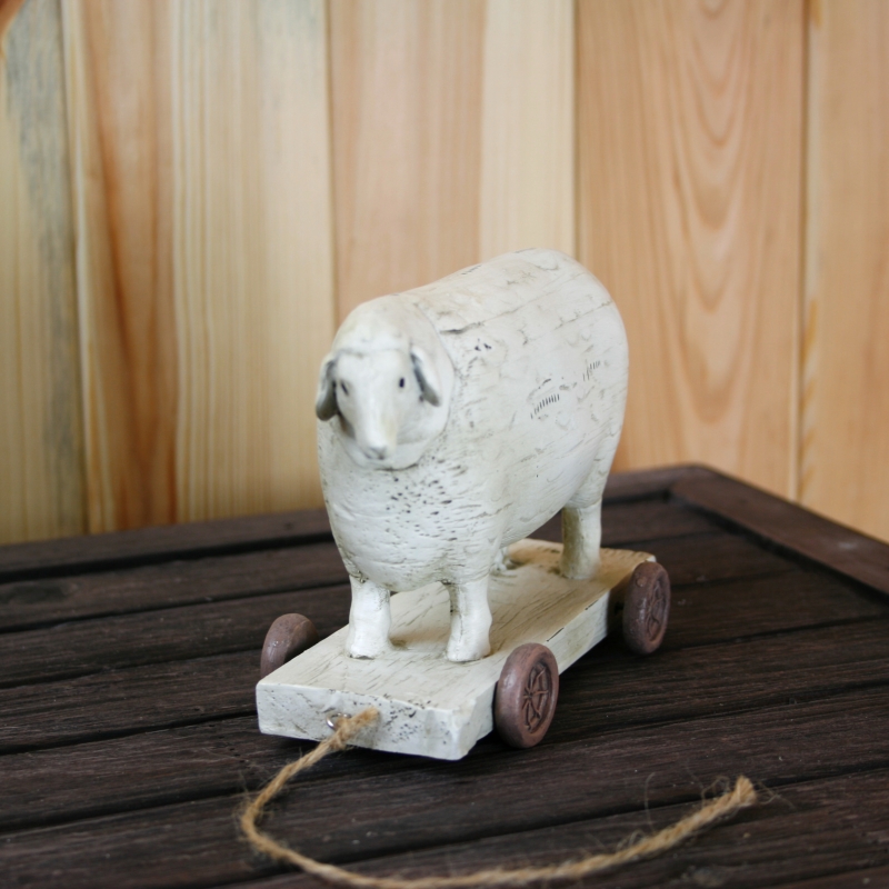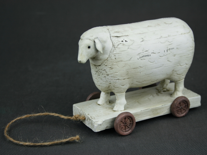 Ovečka na kolečkách se skvěle hodí pro výzdobu bytu v období Velikonoc.