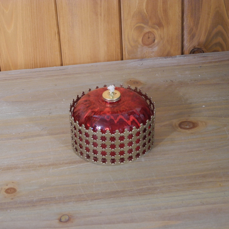Petrolejka červená má průměr 10cm a výšku 6cm.
