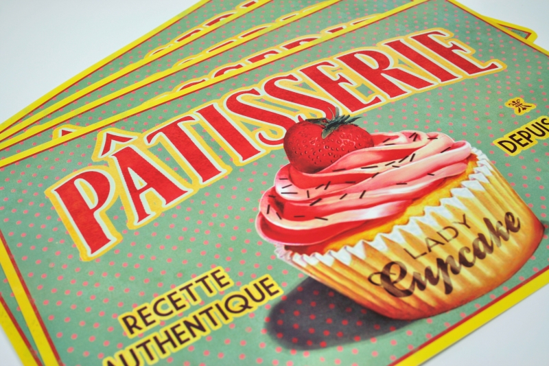 Prostírání na stůl Lady Cupcake je vyrobené z plastu a potěší každého, kdo se zajímá o retro styl a má rád staré kavárenské motivy.
