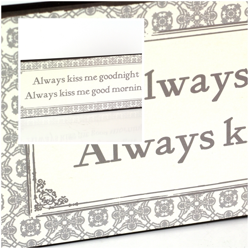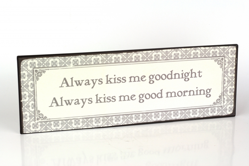 Plechová cedule s nápisem "Always kiss me goodnight ... Always kiss me good morning".