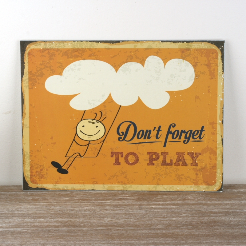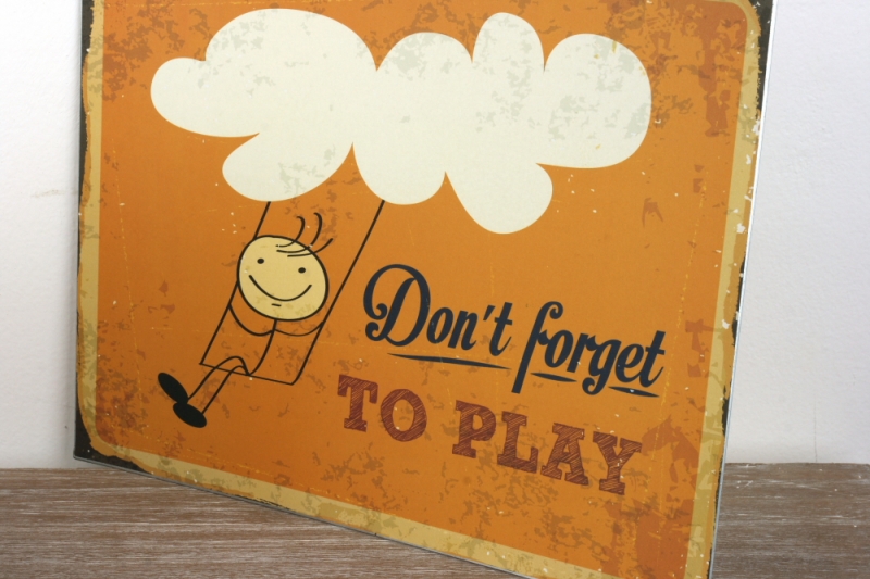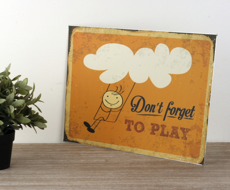 Plechová cedule do dětského pokoje Dont forget to play 30x40cm je netradiční dekorací dětského pokoje, který stejně jako jiné místnosti v domě ožije teprve s těmi správnými doplňky.