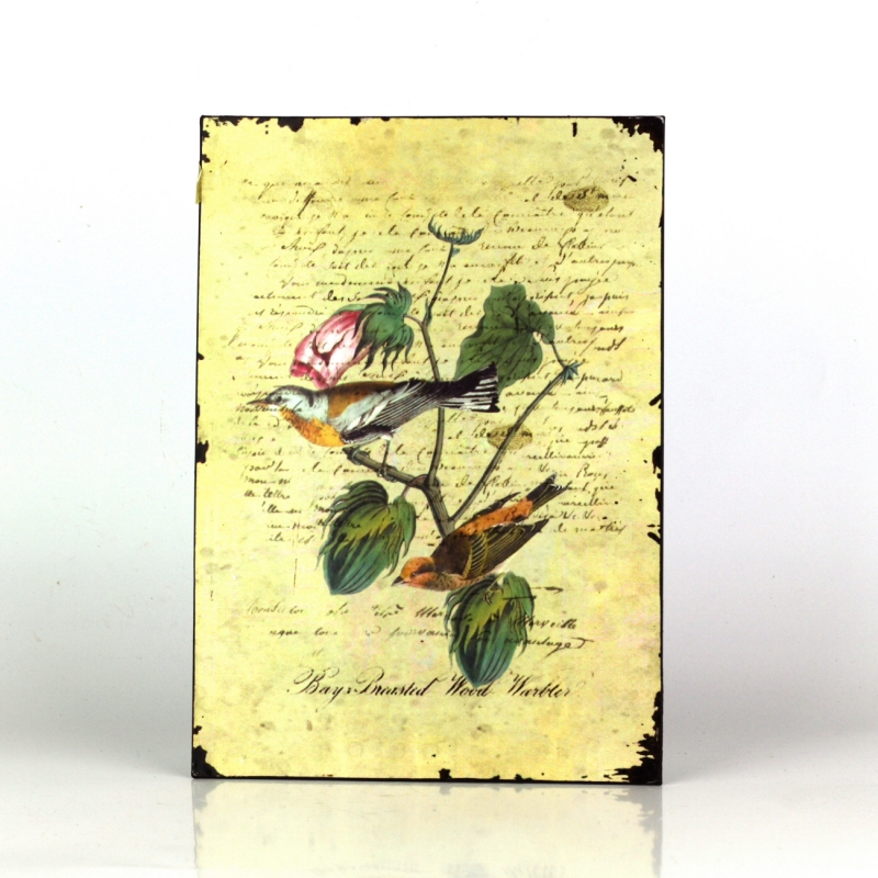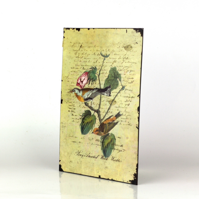 Plechová cedule patří do kolekce cedulek s ptáčky. Ve stejném stylu tak naleznete v nabídce ještě další plechové cedule.