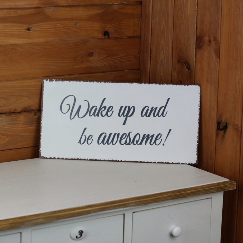 Plechová cedule Wake up and be awesome! 40x20cm je oblíbenou volbou při výběru nástěnných dekorací do interiéru.