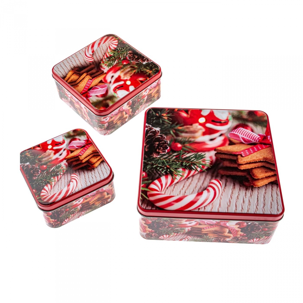 Plechové dózy na perníčky 20 x 20 x 8 cm 3 kusy