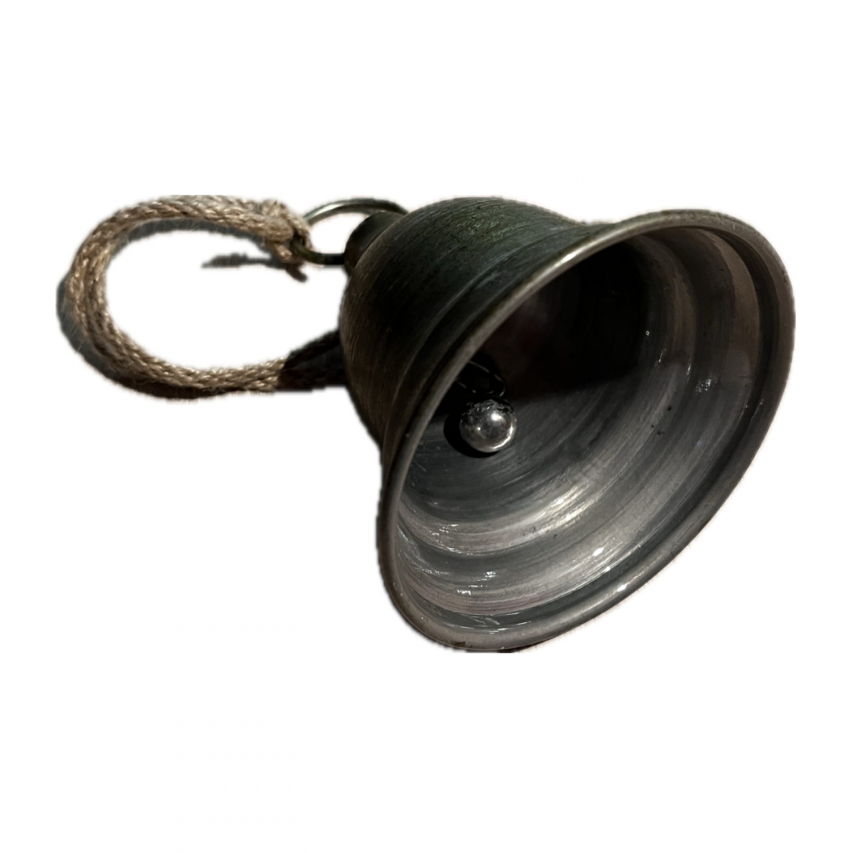 Plechový zvonek s typickým zvukem kovové kuličky zavěšené na řetízku a plechového pláště zvonu.