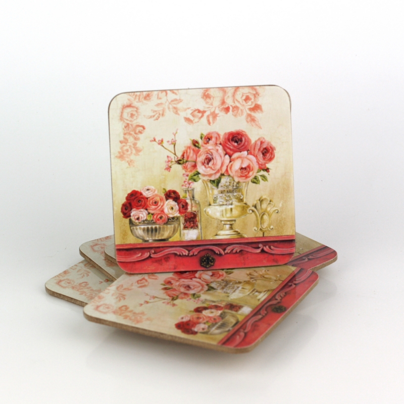 Podtácky pod hrnek (set 6ks) motiv růže 10x10cm zabrání hrnkům s kávou nebo čajem zanechat na stole či ubrusu nevzhledné kroužky.