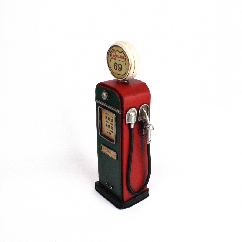 Velmi netradiční pokladnička ve tvaru benzínové pumpy - čerpací stanice GAS. Pumpa je laděna do zeleno-červené barvy, je propracována do nejmenších detailů.