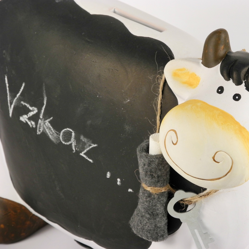 Součástí pokladničky je i klíček a křída pro psaní vzkazů.