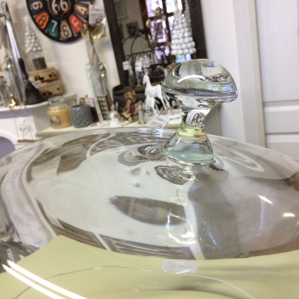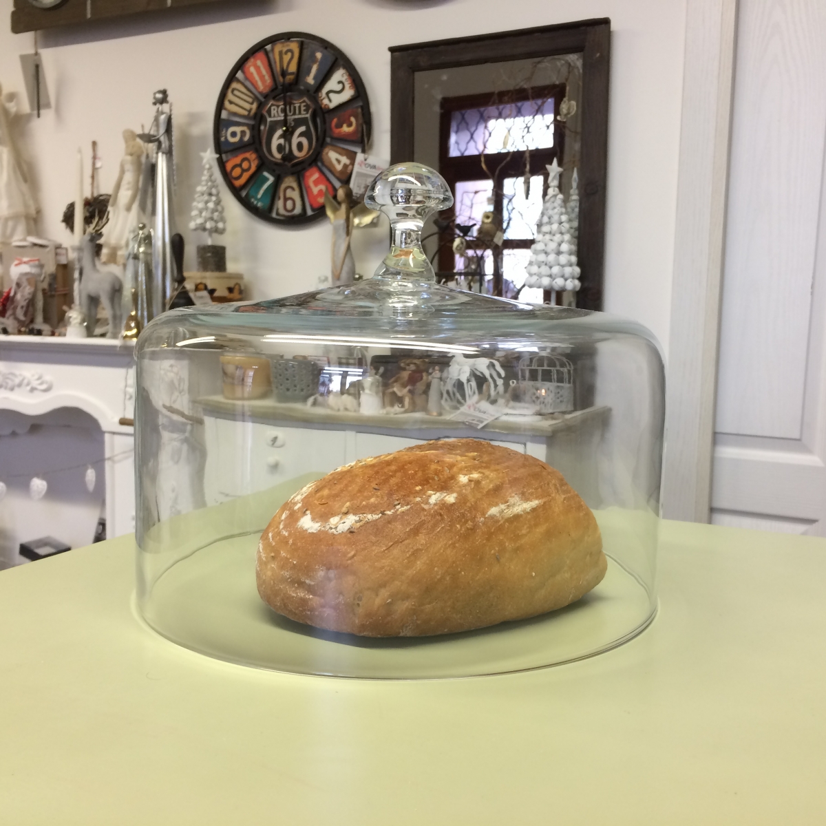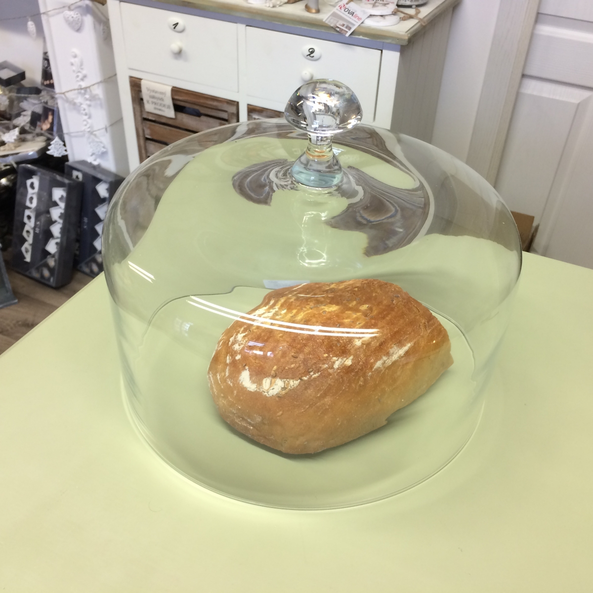 Skleněný poklop na potraviny včetně praktické úchytky pro snadné nadzvednutí, má výšku 25cm