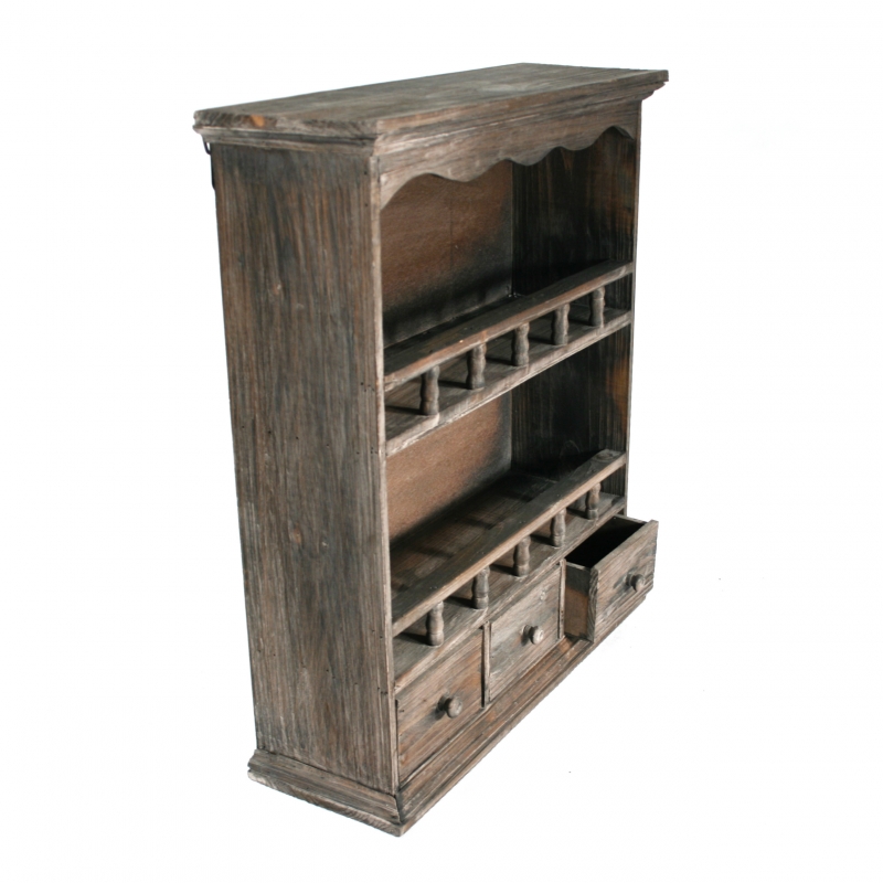 Dřevěná police má hnědou barvu s patinou, která dodává nábytku ten správný šmrnc.