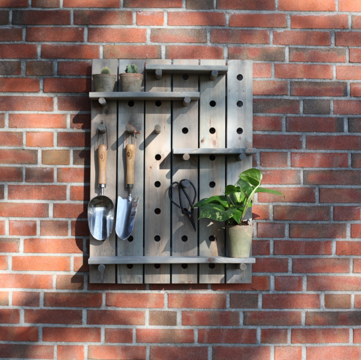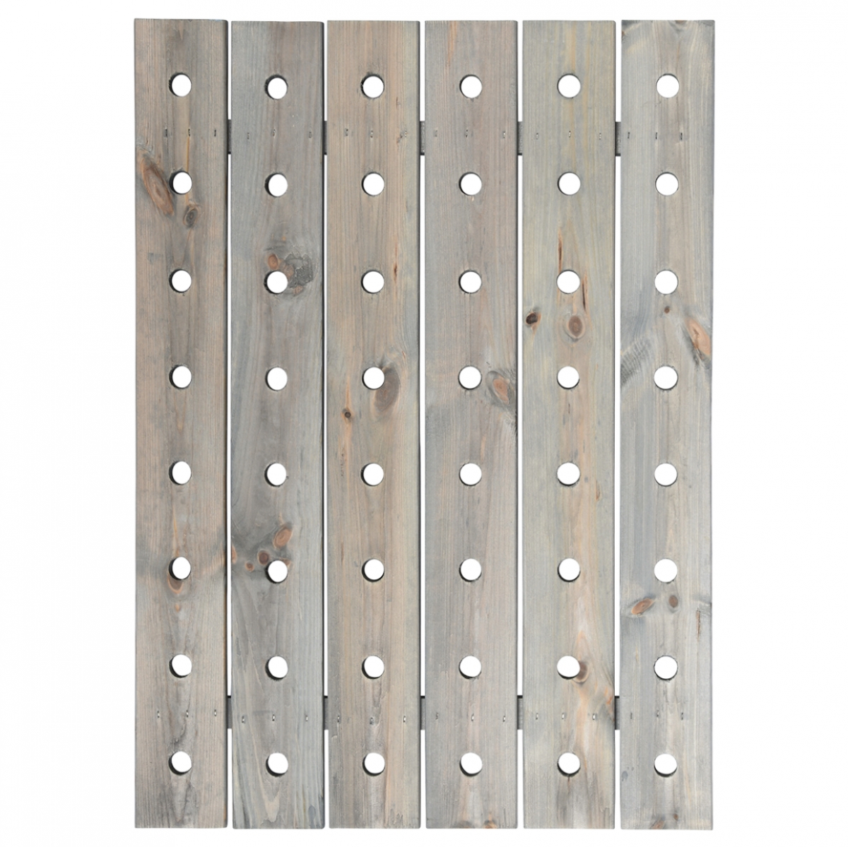 Balení obsahuje 4 ks různě velkých dřevěných destiček a 8 ks dřevěných válců, ze kterých lze v desce s otvory vyrobit poličky či věšáky dle potřeby. Pro montáž nejsou potřeba hřebíky/vruty.