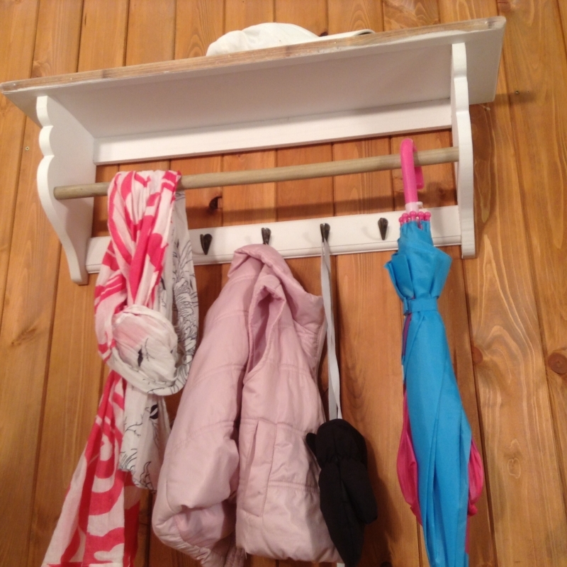 Kromě nich je součástí poličky i tyčka, přes kterou lze přehodit např. šály či šátky. Barva tyčky je přírodní - hnědá.