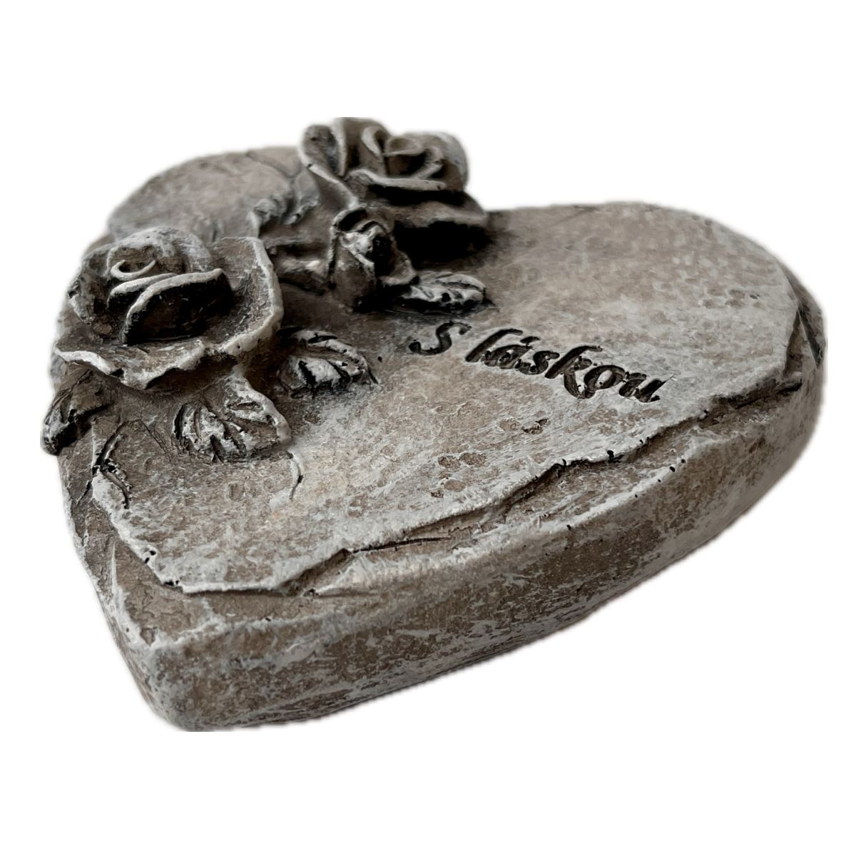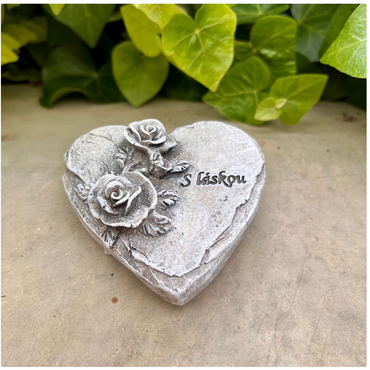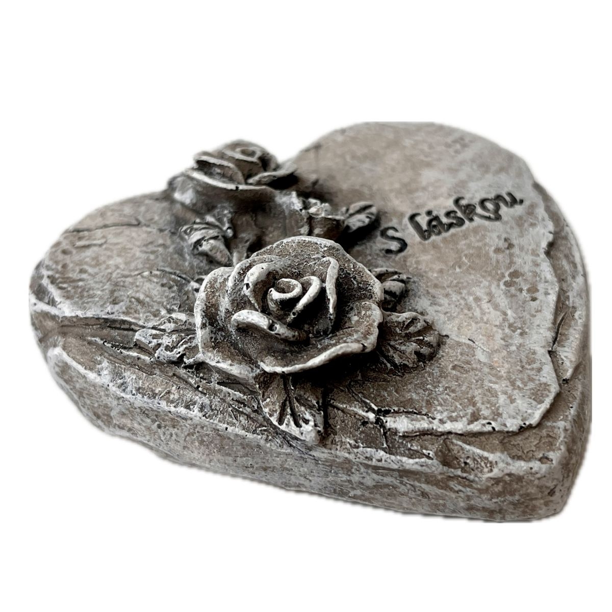 Měkké linie, jemný reliéf a nápis S láskou dělají z tohoto srdíčka víc než jen dekoraci — je to tichý projev citu a vzpomínky. Materiál je polyresin, což umožňuje precizní detaily — strukturu, tvar i text — a zároveň je odolný vůči běžnému provozu či výkyvům počasí. Kompaktní velikost okolo 3 × 8 × 8 cm z něj činí ideální k položení u fotografie, do kolumbária, nebo na náhrobek — nenápadné, ale viditelné.