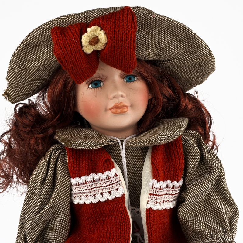 Porcelánová panenka hnědovláska s vestičkou, oblečená v podzimním oblečku o výšce 42cm, je nádherná dekorace pro váš dům či chalupu. Hlavička, ručičky a nožičky jsou vyrobeny z porcelánu. Velice krásný a působivý dekorativní doplněk.