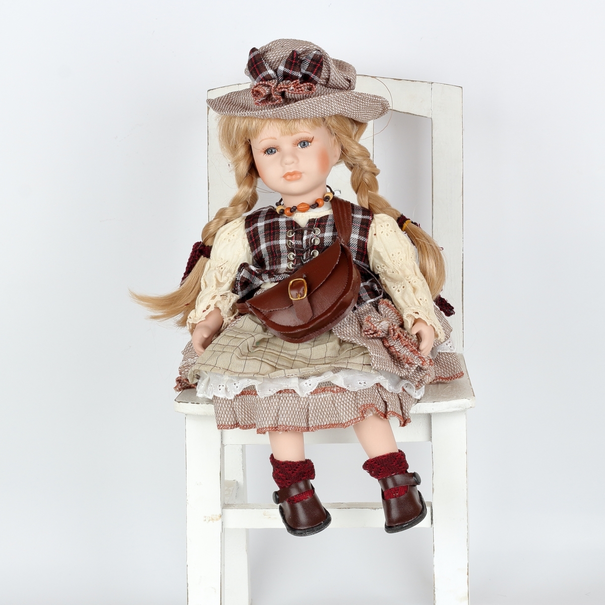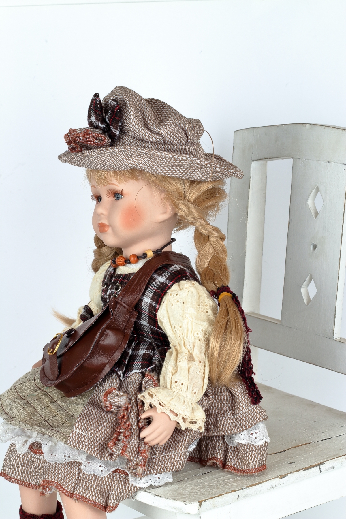 Porcelánová panenka Josefína s kloboučkem a kabelkou