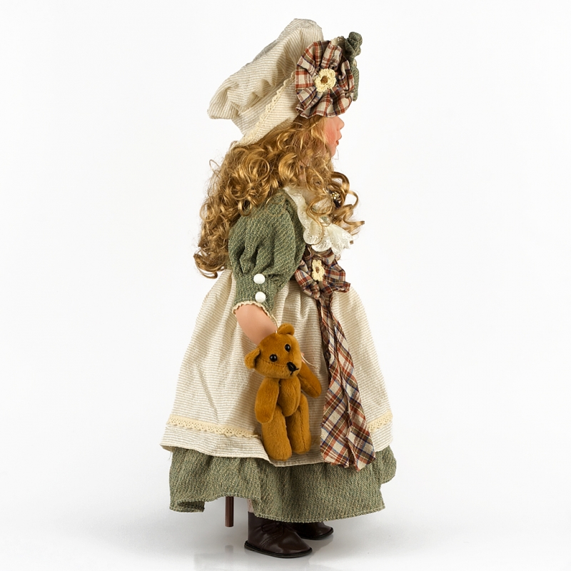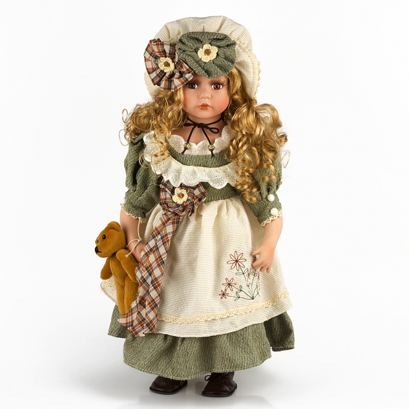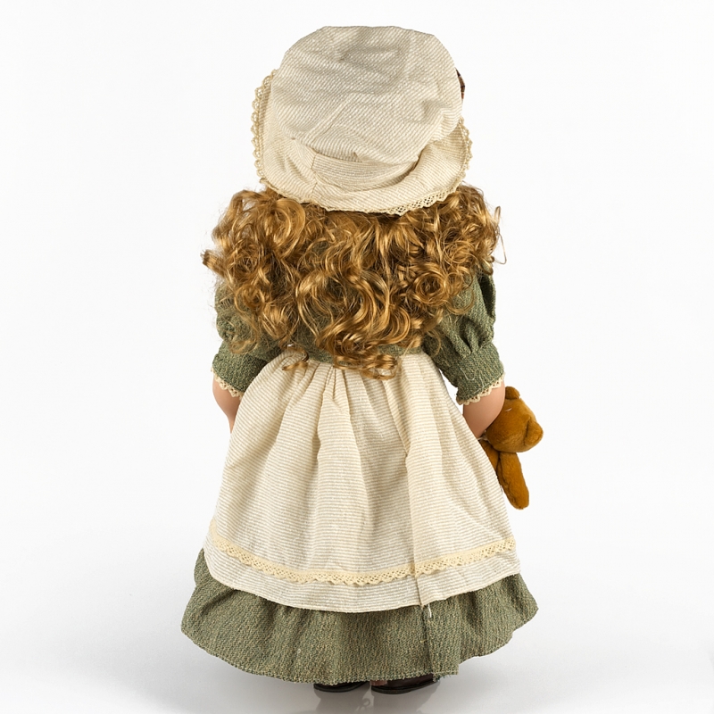 Porcelánová panenka s medvídkem a látkovou kiticí 56cm
