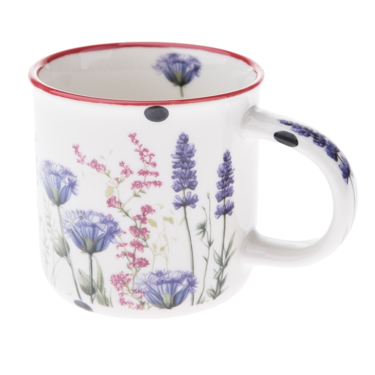 Porcelánový hrnek o objemu 230ml v chalupářském provedení. Design s levandulemi a lučními květy navodí poklidnou atmosféru, ve které si dopřejete svůj šálek čaje s přáteli, ale i sami.