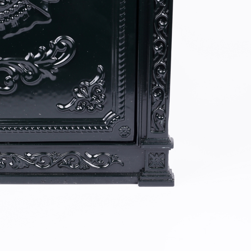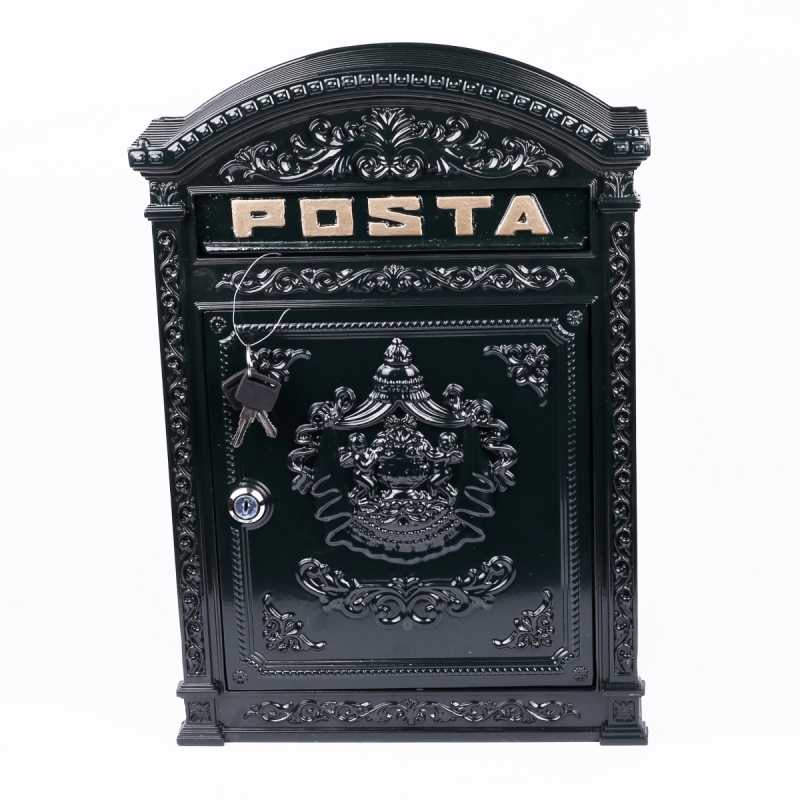 Schránka je bohatě zdobená a snadno ji upevníte. Součástí balení jsou dva klíče.