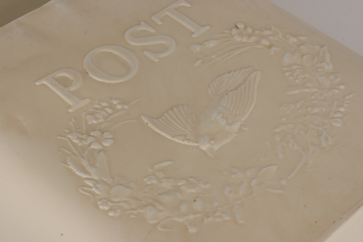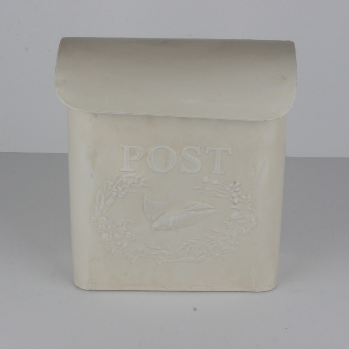 Poštovní schránka má praktické výklopné víko a vše tak půjde snadno vložit i vyjmout. Přední stranu zdobí nápis POST, motiv květin a ptáčka.