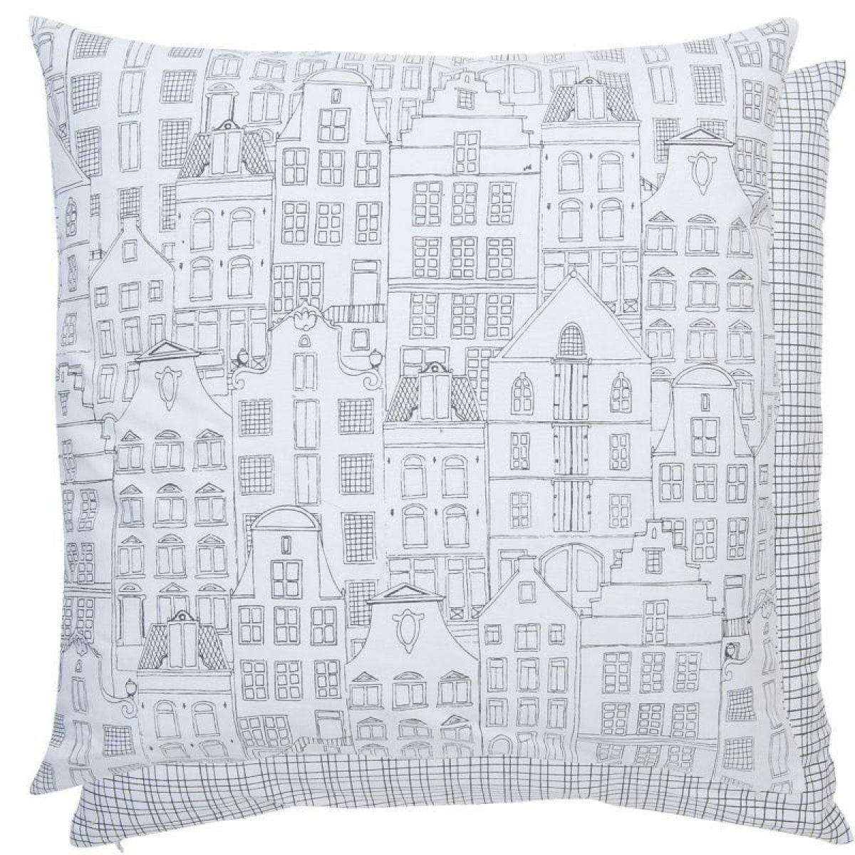 Povlak na polštář domečky celoplošný potisk 50x50cm oživí sedačku, křeslo i ložnici.