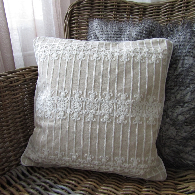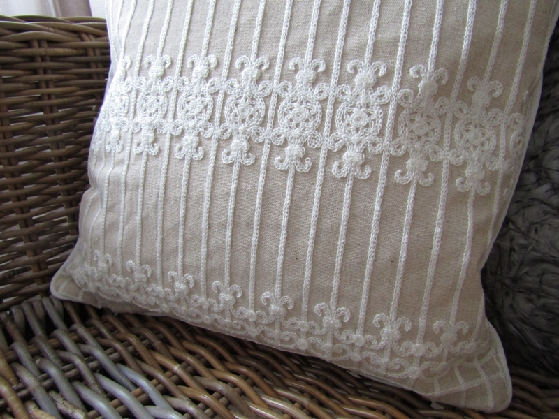 Povlak na polštář s ornamenty 40x40cm , které vytvářejí vzhled připomínající na první pohled krajku. Béžový polštář s bílým vyšíváním je velmi elegantní a dá se skombinovat téměř s jakoukoli barvou. Nelvíc mu však bude slušet interiér zařízený v decentních přírodních tónech.