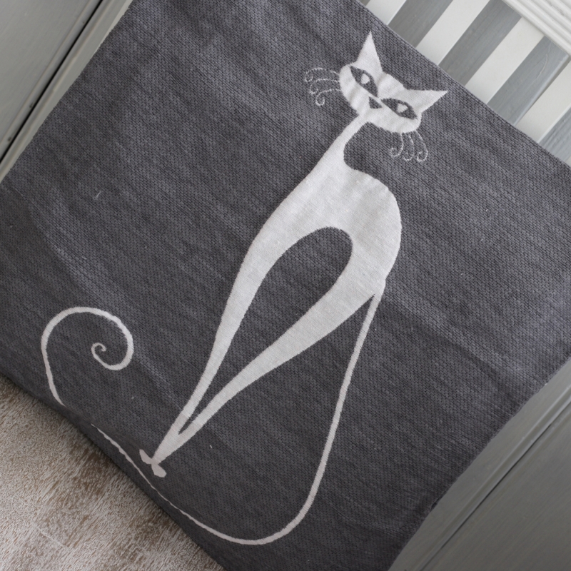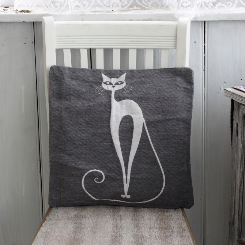 Povlak na polštář šedý s kočkou 40x40cm zaujme svým elegantím provedením.