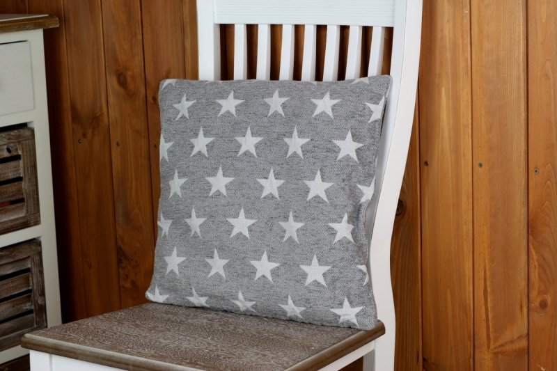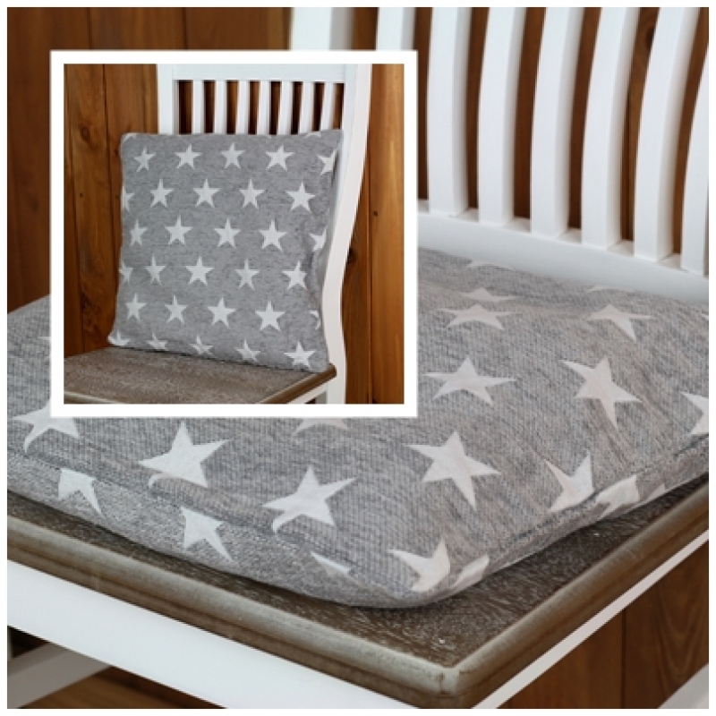 Povlaky jsou ušity z kvalitní silné látky s jemným vroubkováním. Tento je světle šedý s bílými hvězdami z obou stran.