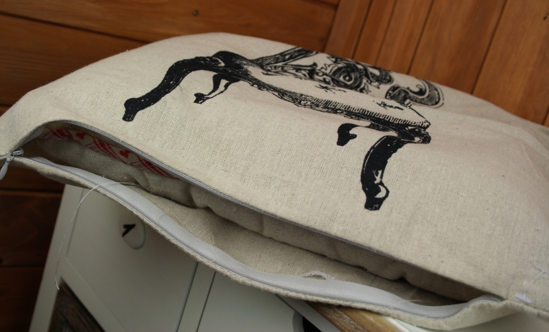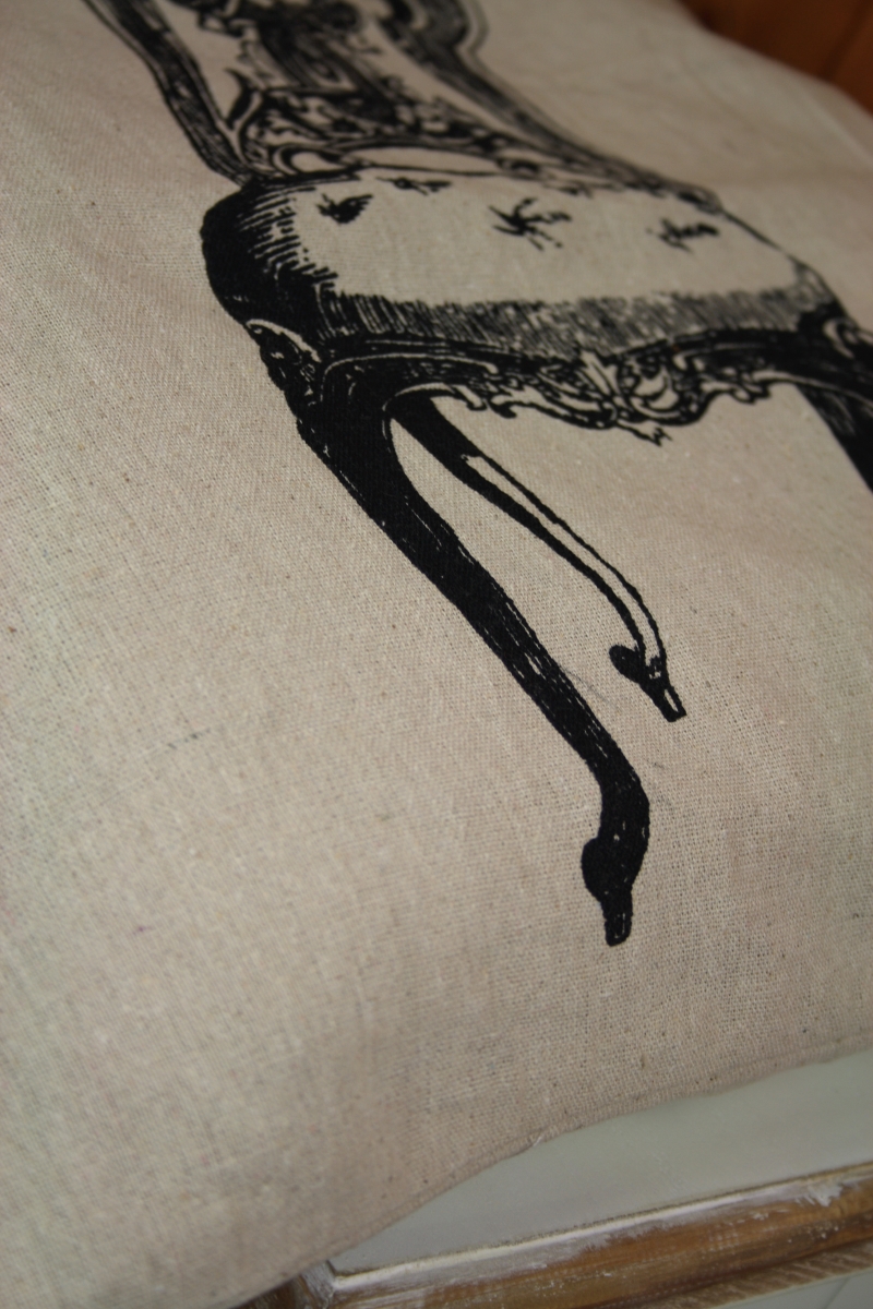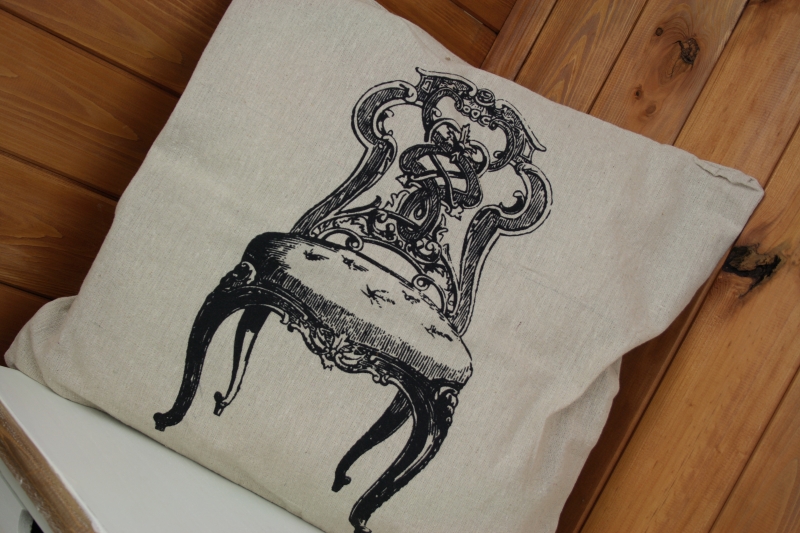 Povlak na polštář s motivem zámeckého křesla.
