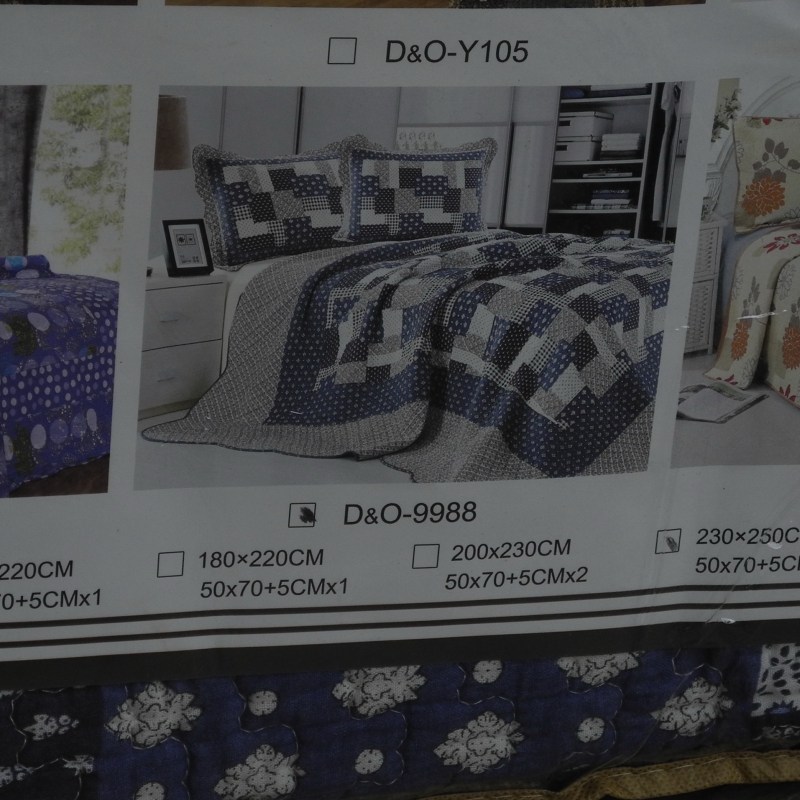 Přehoz s rozměrem 230 x 250 cm nabízíme i s dvěma povlaky na polštář. Ty mají rozměr 50 x 70 cm. Jak přehoz, tak povlaky jsou vyrobeny z kvalitní pevné látky. Přehoz v patchworkovém stylu je laděn do příjemných a uklidňujících modrých tónů. Lůžko ozdobené tímto přehozem se stane nádhernou a nepřehlédnutelnou dominantou pokoje.