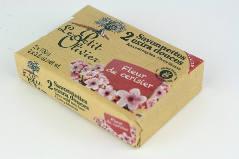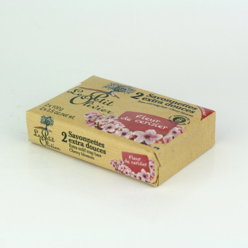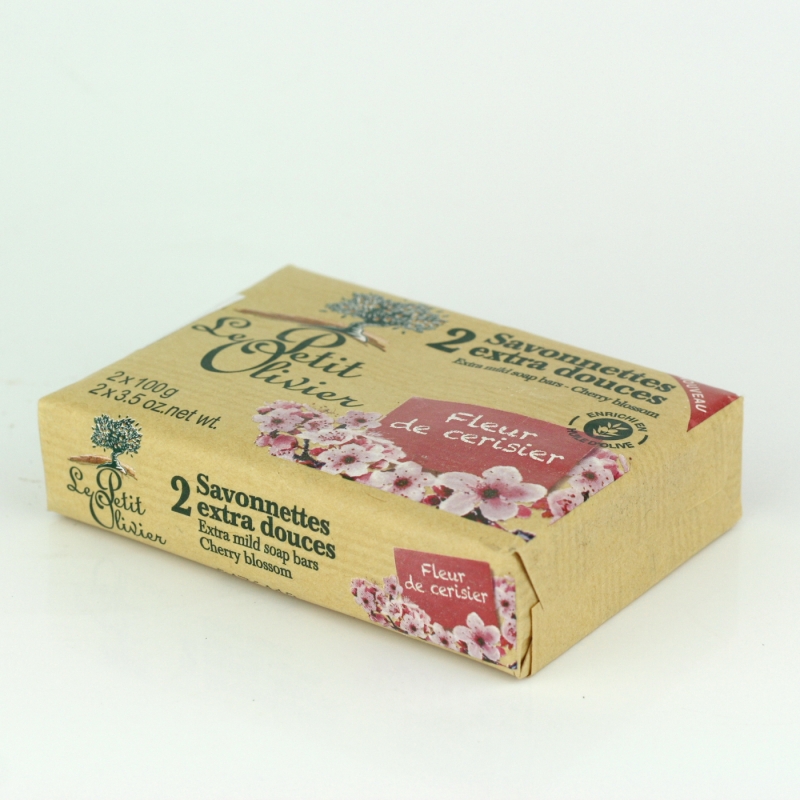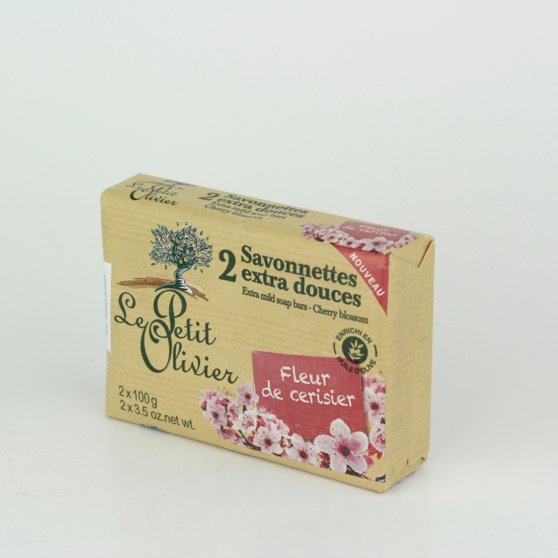 Přírodní mýdlo Le Petit Olivier třešňový květ 2x100g s olivovým olejem a přírodními extrakty jemně čistí a hydratuje pokožku celého těla.