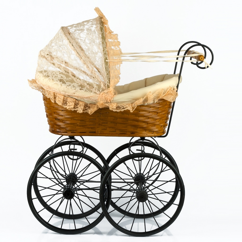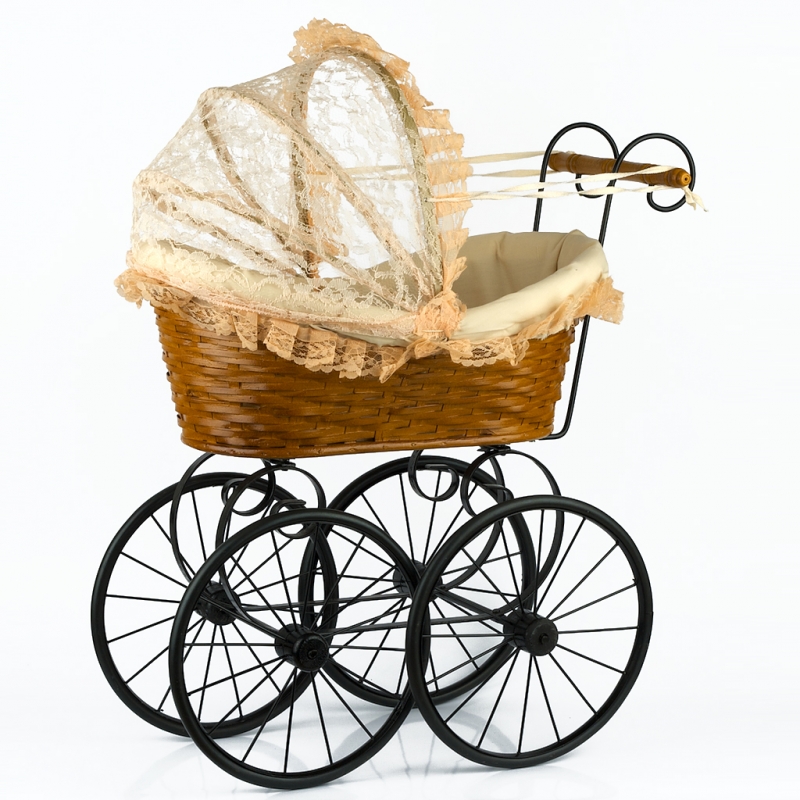 pro panenky 56x28x50cm je zmenšená kopie reálného starodávného proutěného kočárku.