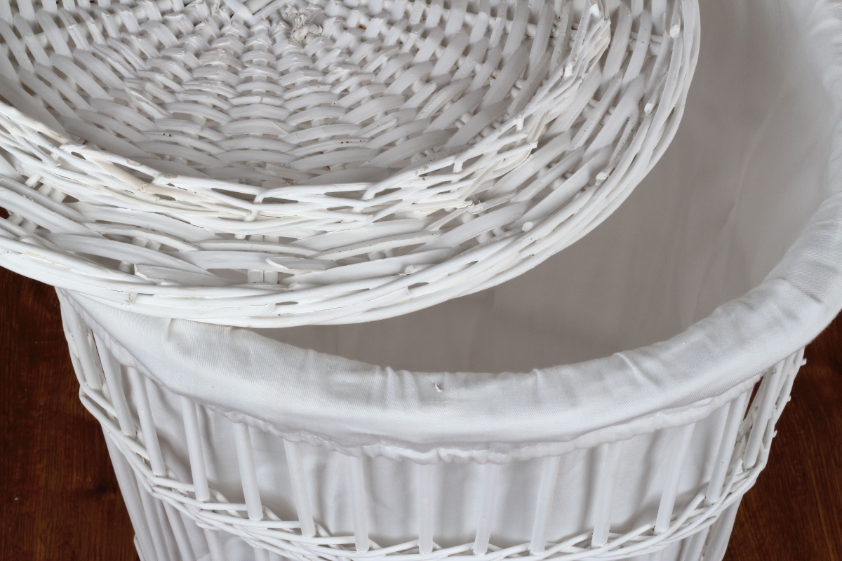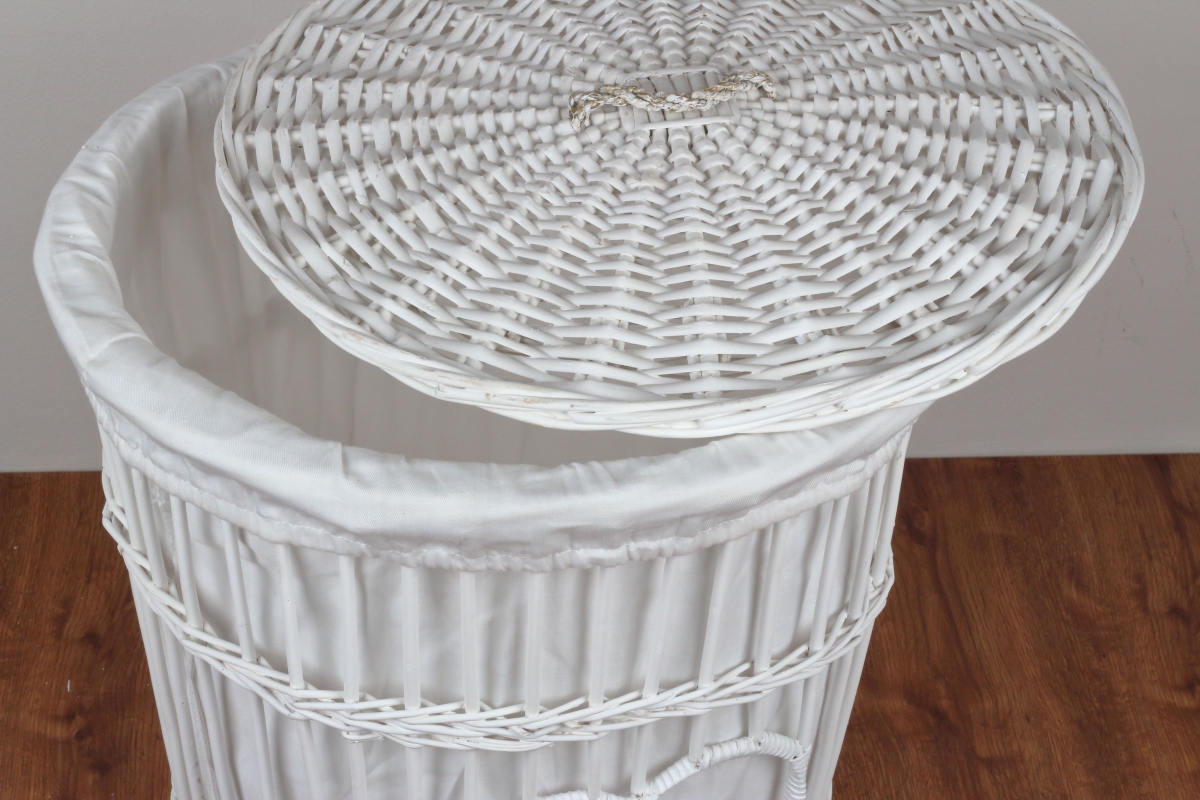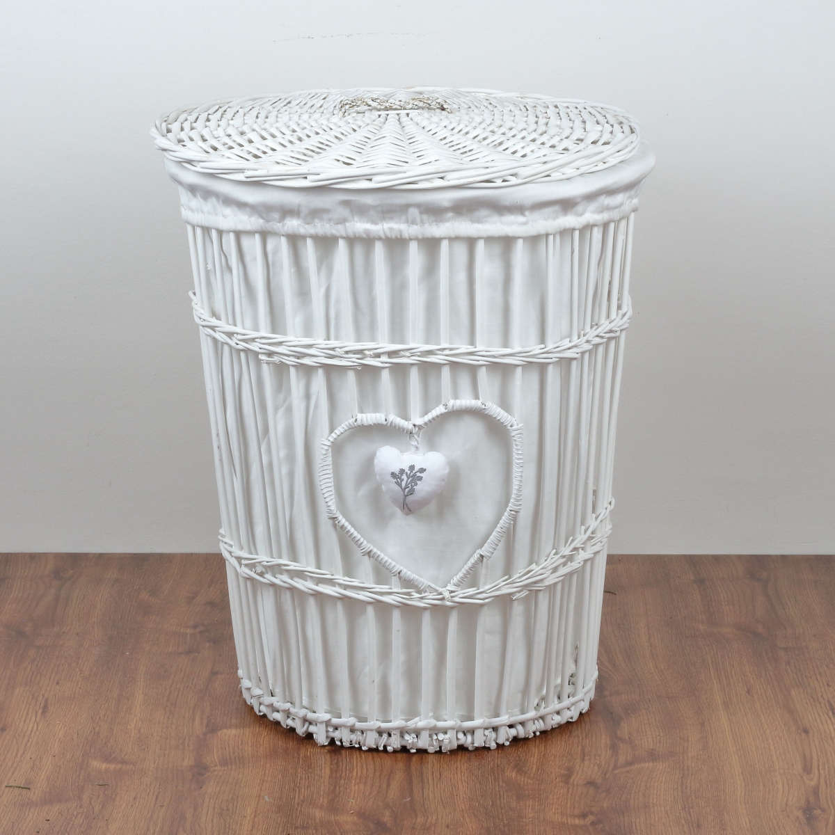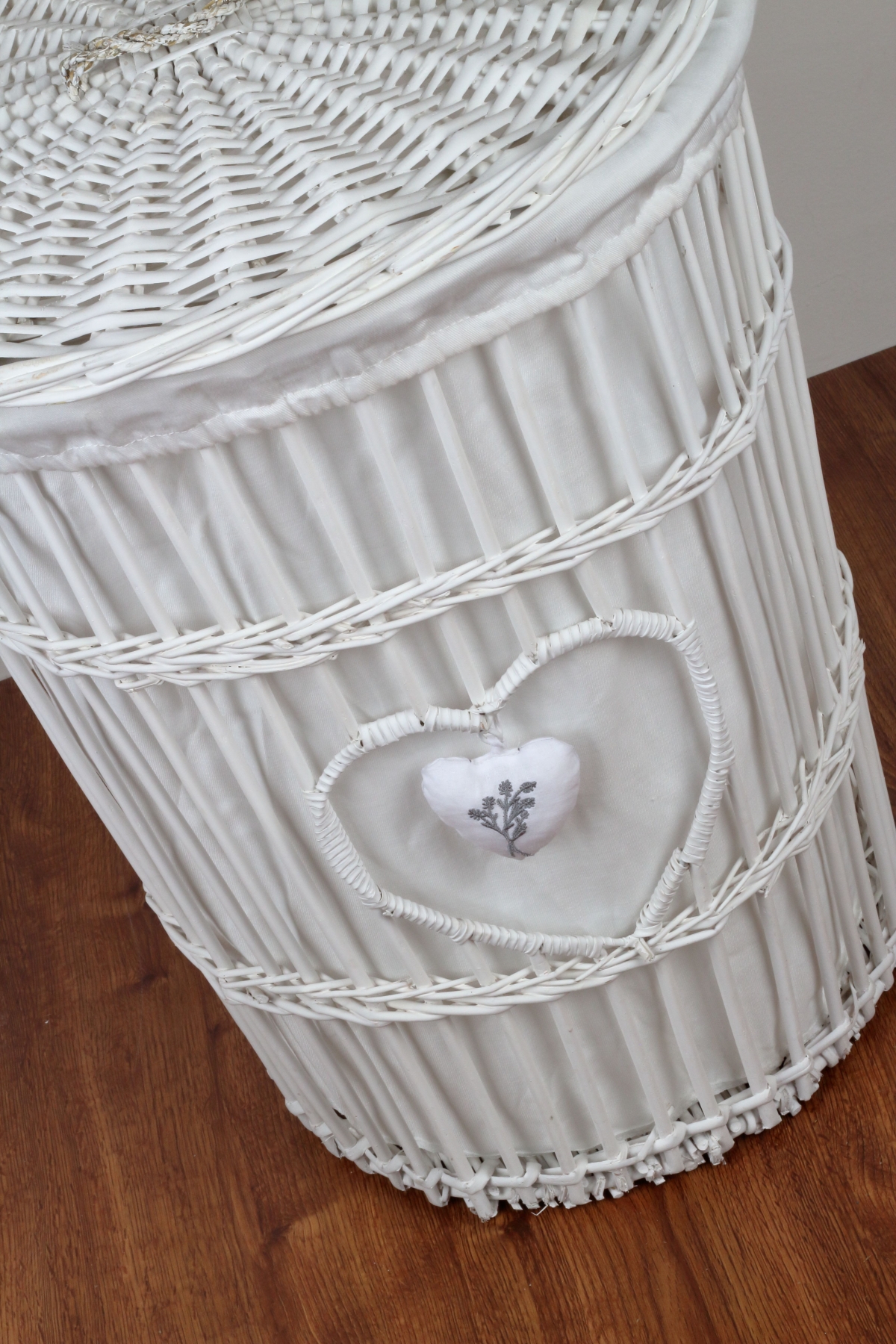 Proutěný koš na prádlo bílý levandulové srdce 59cm elegantním způsobem ukryje špinavé prádlo a stane se součástí jakéhokoliv venkovsky zařízeného pokoje nebo koupelny.