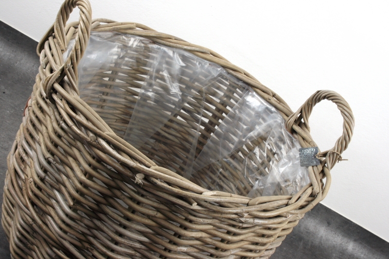 Proutěný koš na rostliny 34cm má uvnitř igelitovou výplň a tak jej můžete bez starosti použít jako obal na květinu. Hlína nepropadá a voda neproteče.