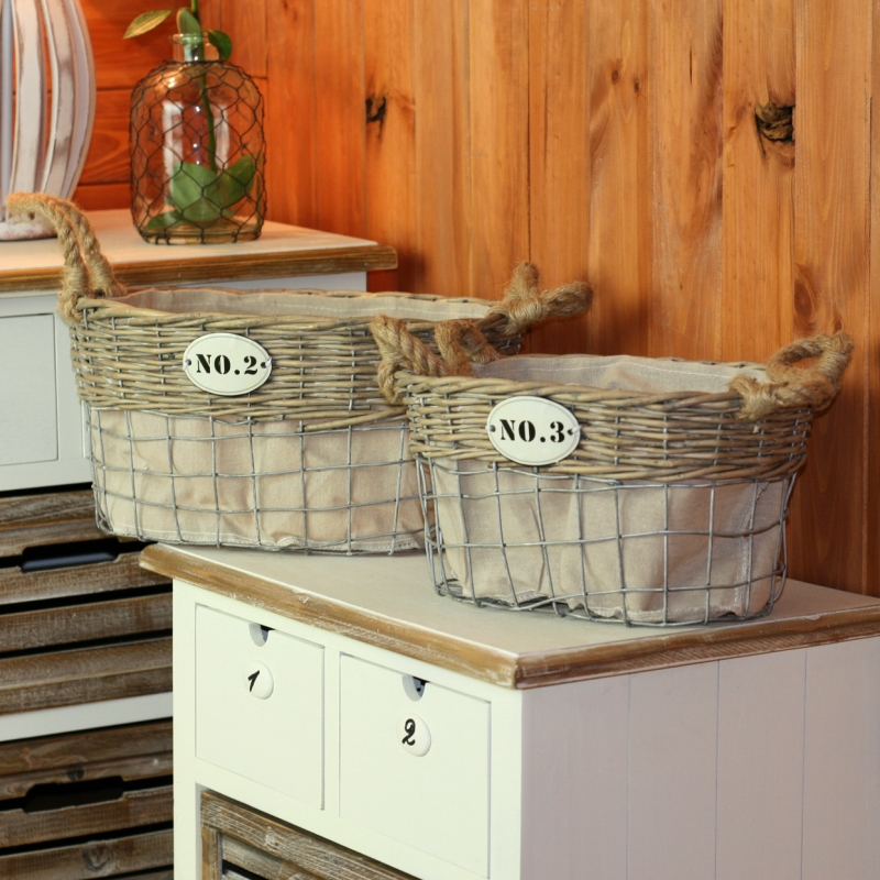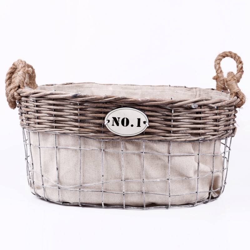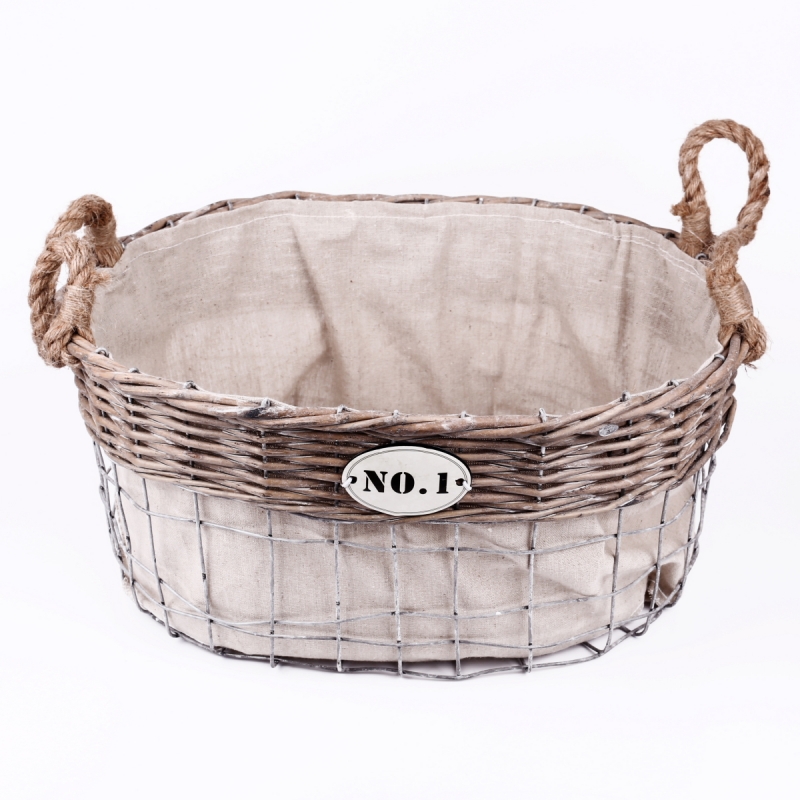 Košíky slouží jako úložné boxy na vše potřebné. Kombinace kovové mísy doplněné o lem z proutí společně tvoří nádherný koš v přírodním stylu. Tento koš má oválný tvar a je dostatečně hluboký. Vejde se do něj opravdu spousta dobrot nebo dětských hraček. Koše mohou sloužit i v ložnici na spodní prádlo nebo v koupelně na kosmetiku.