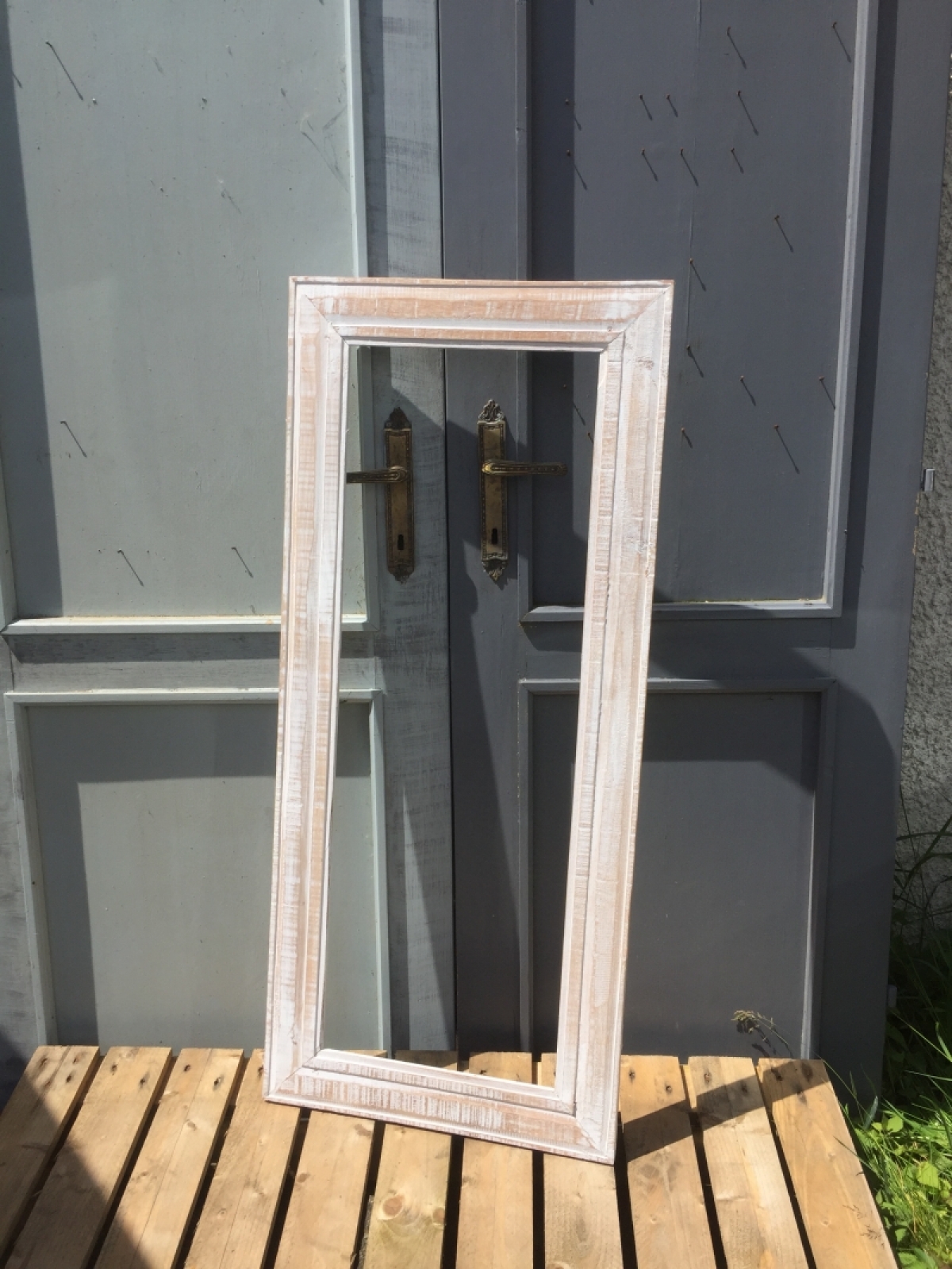 Krásný rám na zrcadlo se světlou patinou bude netradiční, ale velice stylovou dekorací vašeho domova. Dřevěný rám můžete svěřit do rukou sklenáře, který z rámu vytvoří plnohodnotné zrcadlo a nebo ho můžete využít i jinak.