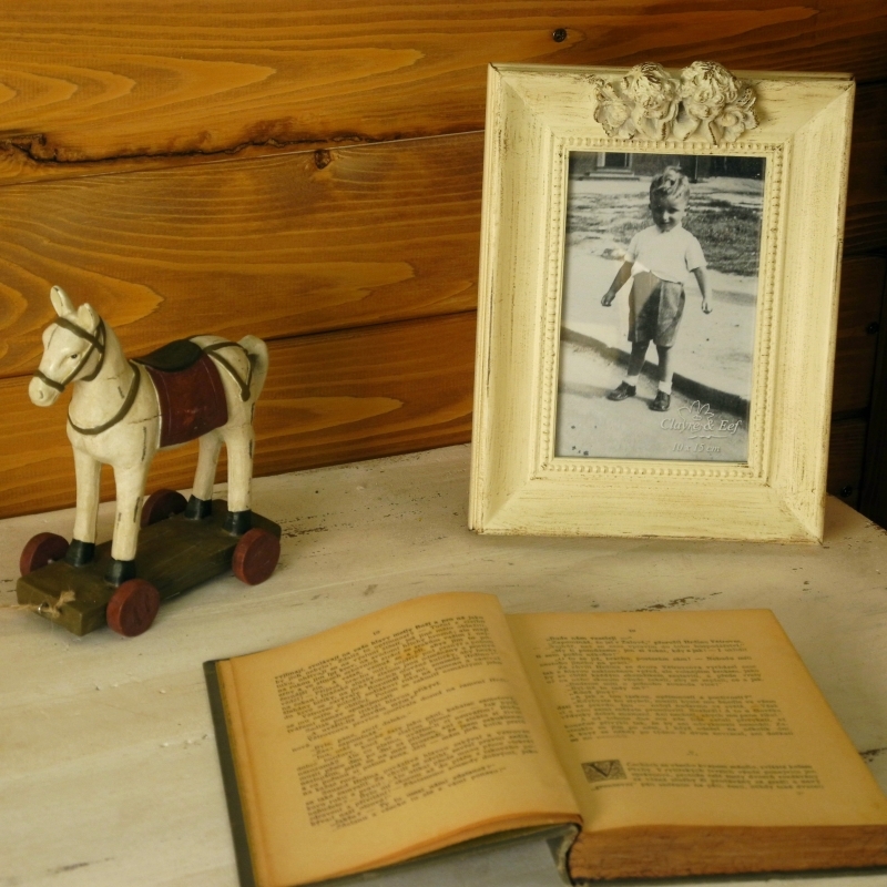 Fotorámeek s elegantní patinou, který střeží dva malý andílci na horní straně.