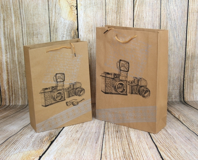 Retro dárková papírová taška fotoaparát 23x32x8,5cm