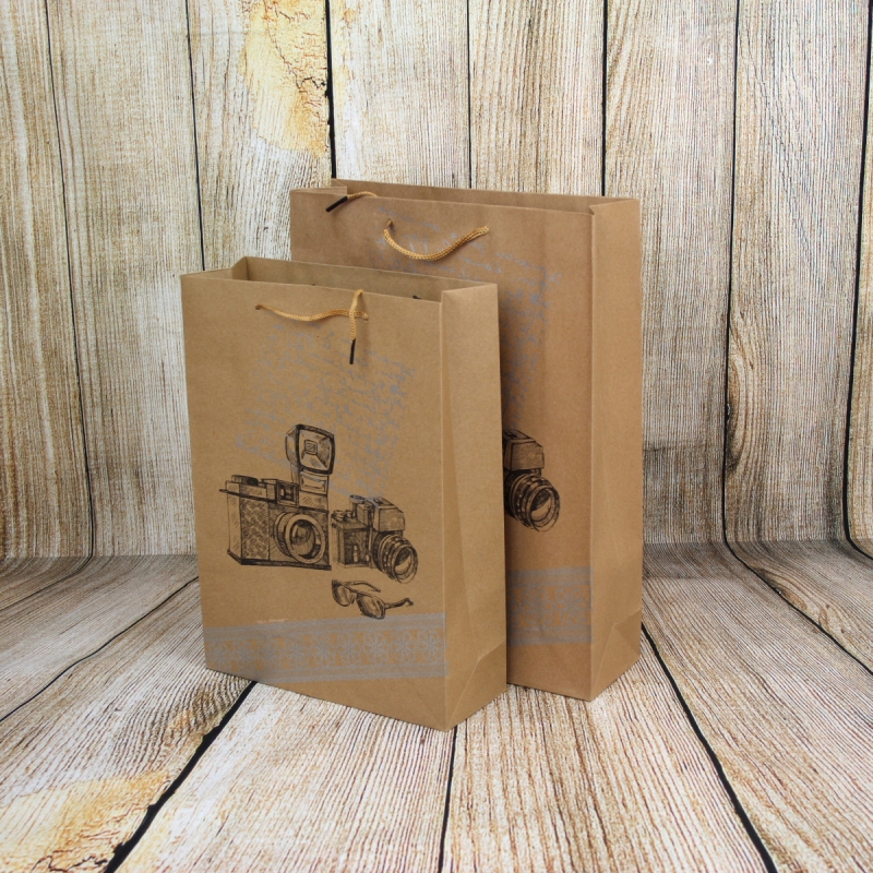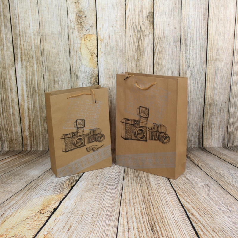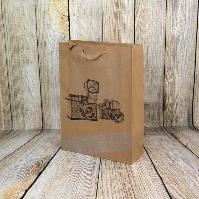 Retro dárková papírová taška fotoaparát 27x37x9cm
