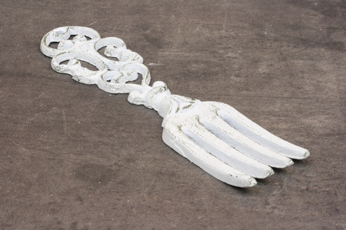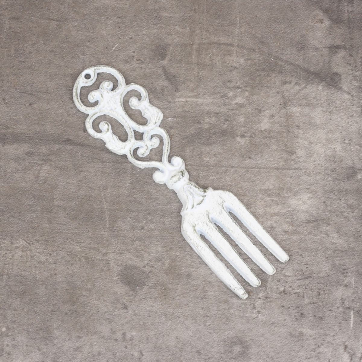 Retro dekorace litinová vidlička bílá 21,5cm jako netradiční doplněk do stylové kuchyně.